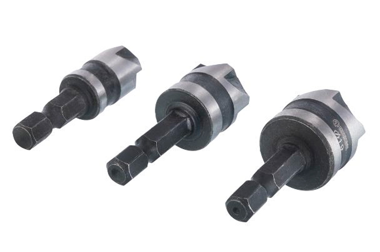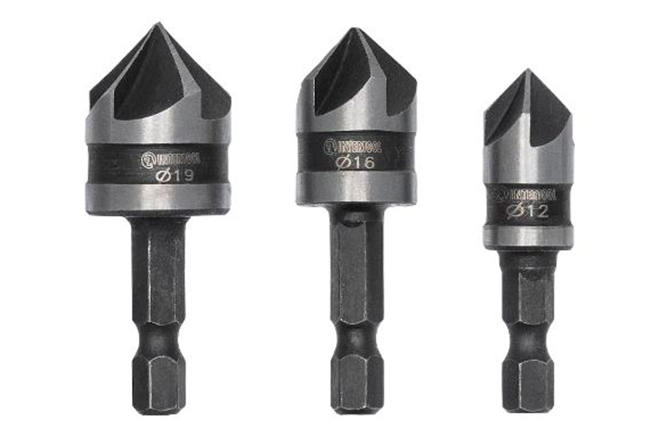 Набор зенкеров Intertool – применяются для обработки краев отверстий, для выполнения углублений под шляпки шурупов, снятия фасок и удаления заусенцев в древесине, пластике и мягких металлах. Зенкеры изготовлены из высокоуглеродистой стали, имеют диаметр 12 x 16 x 19 мм.