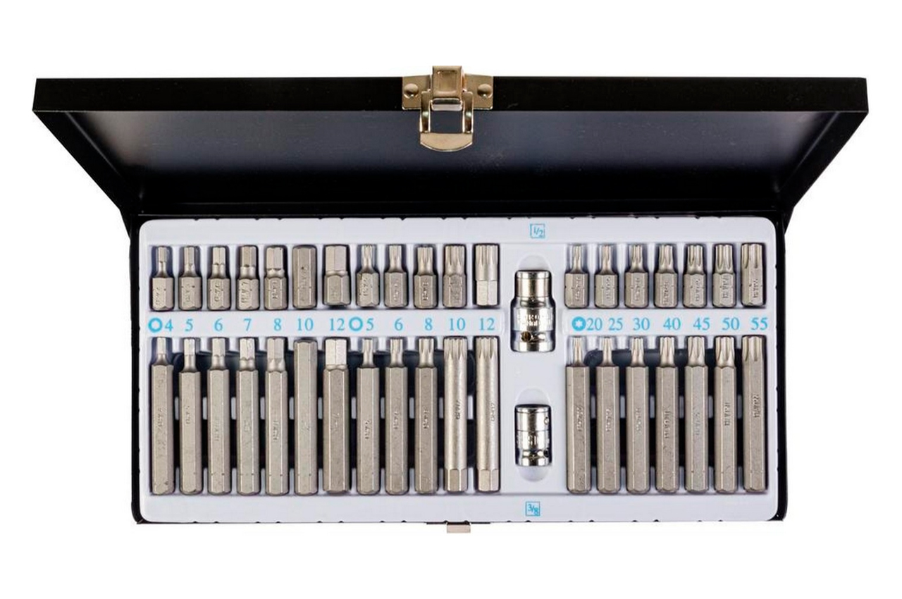 Набор звезд и шестигранников 40ед. различных типоразмеров применяется для крепления элементов деталей шестигранной формы. Изготовлены из хромванадиевой стали, которая обеспечивает высокие эксплуатационные показатели и защиту от коррозии. Предотвращают стирание граней, обеспечивают высокий крутящийся момент. Все головки размещены в специальной крепежной коробке.
