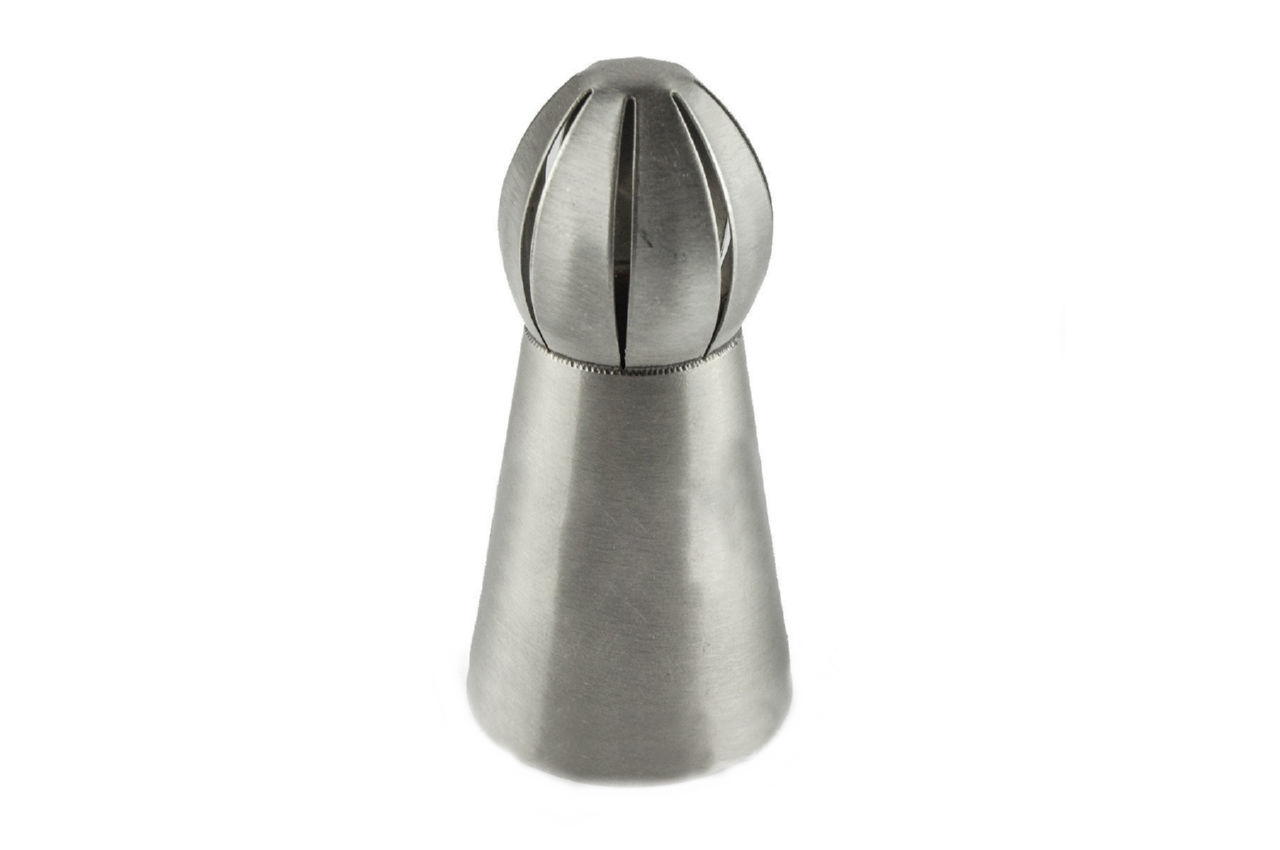 Кондитерская насадка Empire высотой 62 мм, сфера открытая – в помощь начинающему мастеру и профессионалу со стажем. Из множества других вариантов из высокопрочной нержавейки это самый эффективный и, пожалуй, недорогой способ украсить двухъярусный торт, вкуснейший «ансамбль» из десятков шоколадных маффинов или капкейков. Верхний диаметр – 18 мм. Нижний – 31 мм. Подобные приспособления проявляют повышенную устойчивость к деформациям. В отличие от пластиковых аналогов, они не впитывают жиры, не окрашиваются ингредиентами.