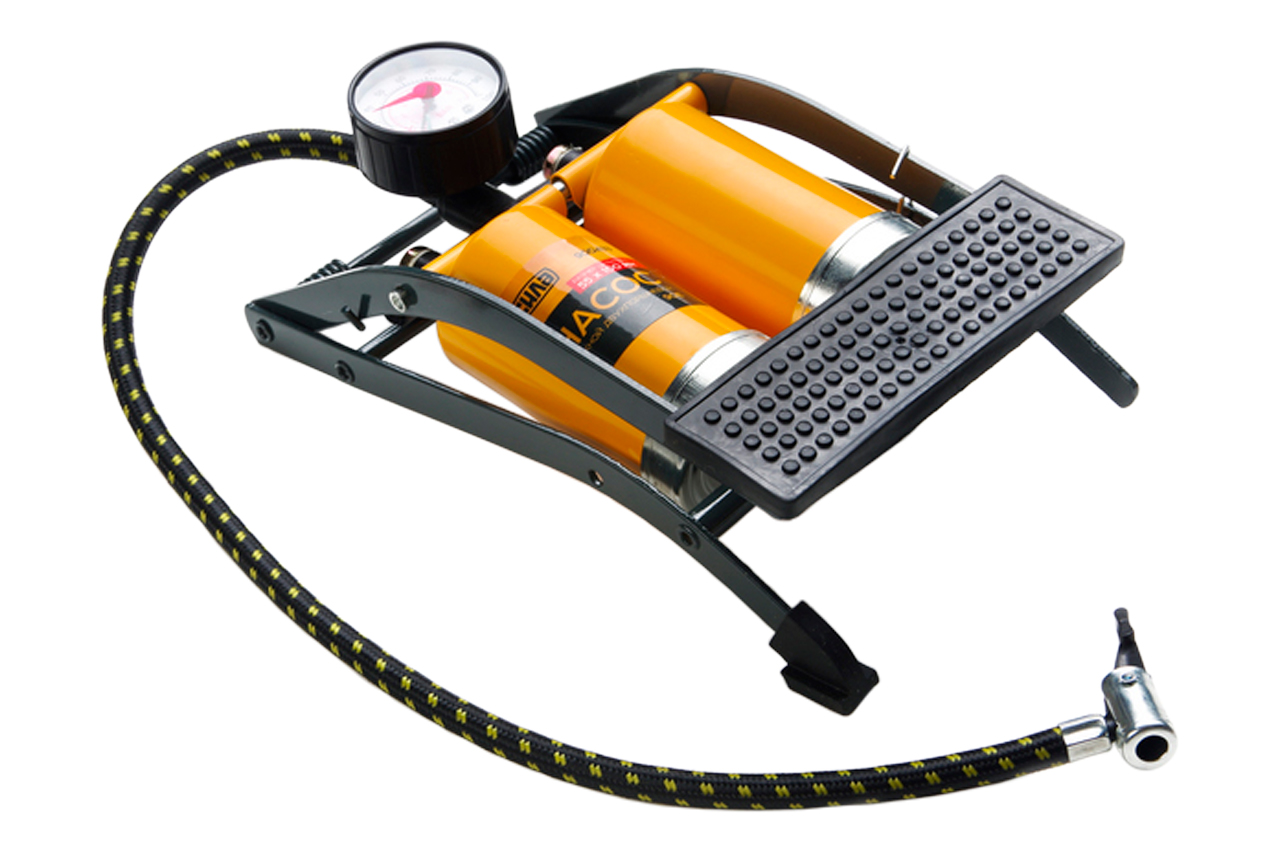 Насос ножной двухпоршневой Сила, для быстрого нагнетания воздуха в автомобильные шины, велосипедные колеса или колеса мотоциклов. Манометр - аналоговый; количество цилиндров - 2; размеры цилиндра: 2 х 55 х 100 мм; максимальное давление - 7 Атм; длина шланга - 55 см. Манометр: аналоговый; Материал цилиндра: металл; Рабочий объем цилиндра: 480см³; Размер цилиндра: 55х100мм; Тип насоса: ножной