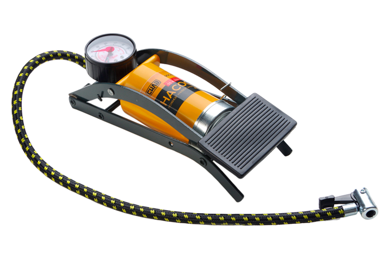 Насос ножной однопоршневой Сила, для быстрого нагнетания воздуха в автомобильные шины, велосипедные колеса или колеса мотоциклов. Манометр - аналоговый; количество цилиндров - 1; размер цилиндра - 55 х 120 мм; максимальное давление - 7 Атм; длина шланга - 55 см. Манометр: аналоговый; Материал цилиндра: металл; Рабочий объем цилиндра: 240см³; Размер цилиндра: 55х100мм; Тип насоса: ножной