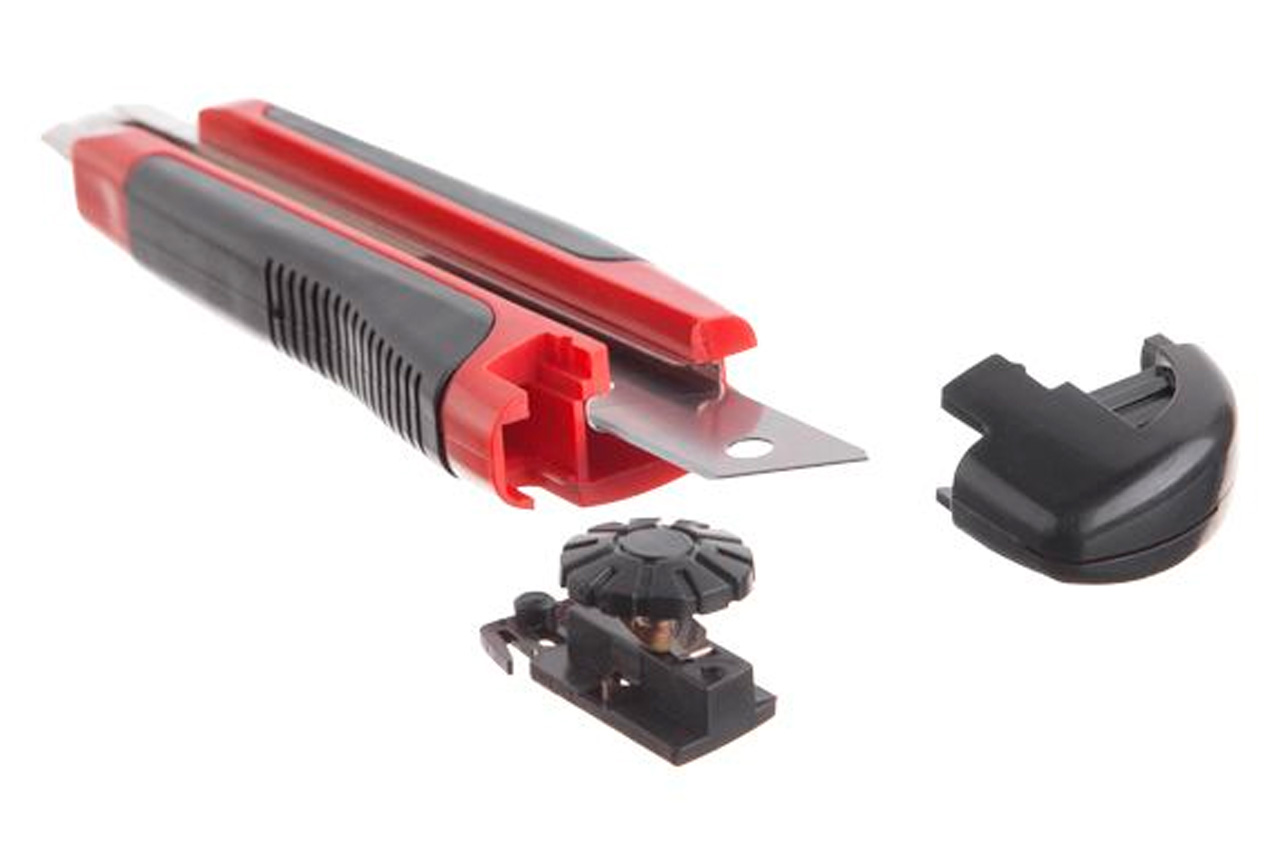 Нож прорезной оснащен металлической направляющей, надежно фиксирующей лезвие. Выдвижение и фиксация осуществляется с помощью пластикового винта. Корпус ножа с прорезиненной рукояткой, которая обеспечивает надежную фиксацию инструмента в руке во время работы. Лезвие ножа - сменное, сегментированное, шириной 18 мм. Предназначен для резки бумаги, картона, бандажных лент при проведении строительных работ. Тип применяемого лезвия: лезвие отломное; Материал корпуса: пластик; Покрытие рукоятки: резина; Ширина лезвия: 18 мм; Фиксатор: винтовой