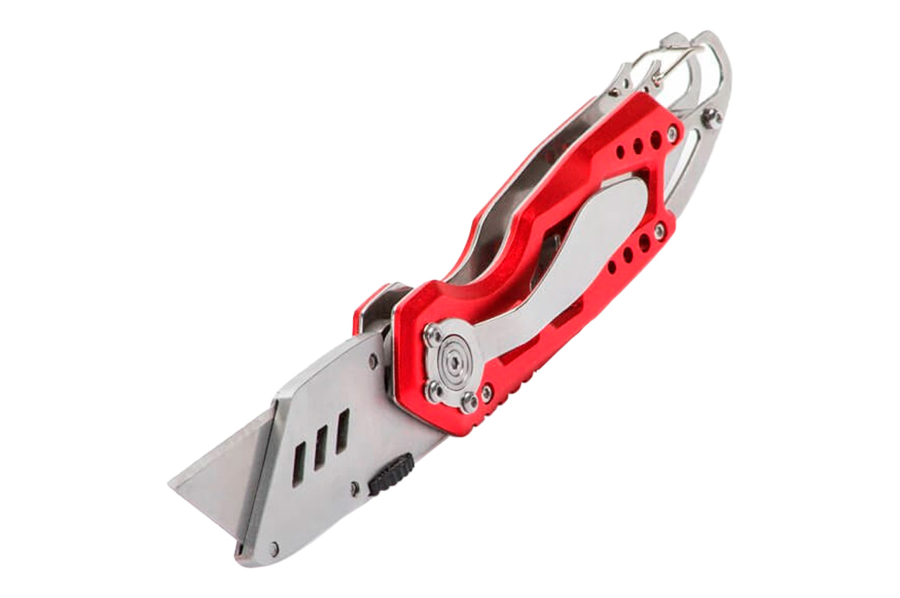 Сложно представить любой ремонт без строительного ножа! Специально для современных профессионалов, специалистов и мастеров, для которых безопасность, долговечность, и комфорт – приоритеты был создан строительный нож HT-0531! Отлично справляется с порезкой ковролина, гипсокартона, монтажной пены, скотча, пленки, бумаги и пр. Станет идеальным помощником на стройках, складах, в магазинах, а также в быту. Острый нож с трапециевидным лезвием, экономит ваше время (подойдут запасные лезвия HT-0519 ). Затупившийся край можно легко перевернуть и работать другой стороной лезвия - и у вас в руках снова острый инструмент! Материал изготовления лезвия - японская сталь, марки SK5. Повышенное содержание углерода в сплаве делает лезвие устойчивым к динамическим нагрузкам, и сохраняет остроту режущей кромки надолго. Сам нож компактный и удобный – складная рукоятка позволяет носить его в кармане. Легкий, он идеально сбалансирован и удобно лежит в руке за счет скелетного типа рукоятки, которая изготовлена из прочного алюминия. Наличие клипсы и карабина на ноже расширяют возможности его хранения и ношения. Особенности: Качественная сборка и материалы изготовления – никаких люфтов в работе; Лезвия из прочной, долговечной японской стали SK5; Удобная форма и легкий вес за счет алюминиевой рукоятки скелетной типа; Быстрая замена трапециевидных лезвий с кнопкой фиксации; Упоры под большой и указательный пальцы для максимального комфорта в работе; Клипса и карабин на корпусе для удобного ношения на поясе или в кармане. Тип лезвия: трапециевидное; Длина в сложенном виде: 120 мм; Общая длина: 180 мм; Материал лезвия: сталь SK5; Материал корпуса: алюминиевая рукоятка скелетного типа