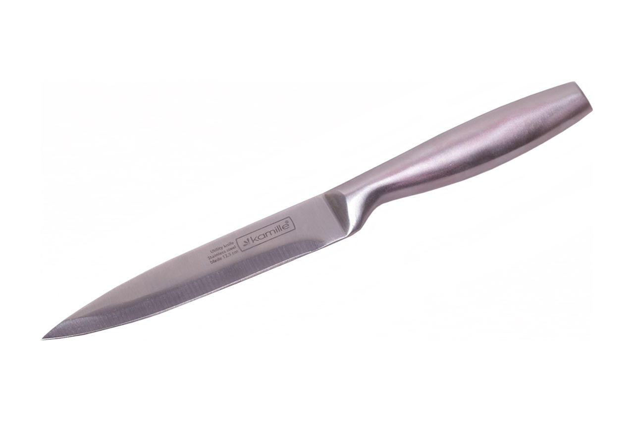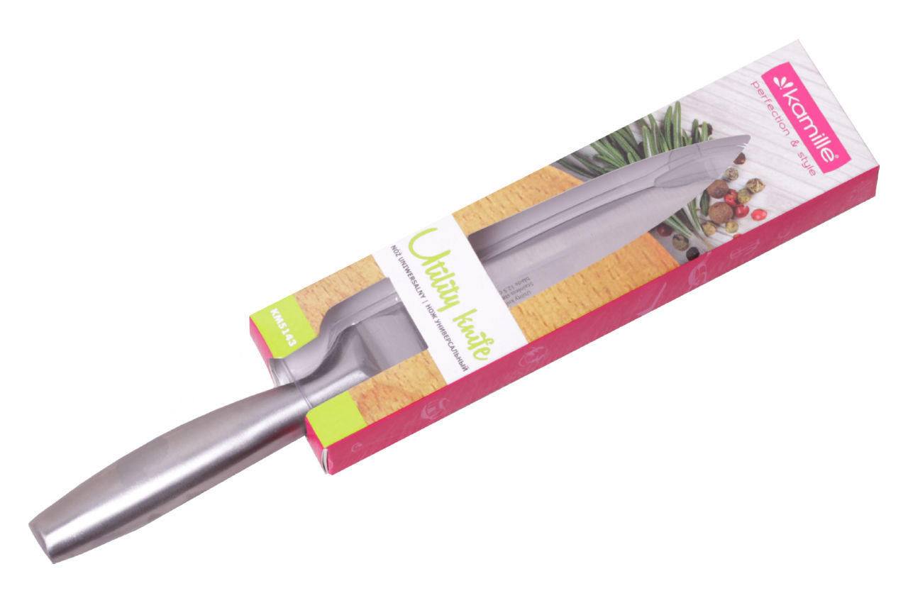 Нож кухонный Kamille – кухонный нож, лезвие которого изготовлено из высококачественной нержавеющей стали, которая отличается прочностью и долговечностью, не подвержена коррозии и воздействию кислот, отвечает всем гигиеническим нормам и требованиям, не влияет на вкус и проста в уходе.
