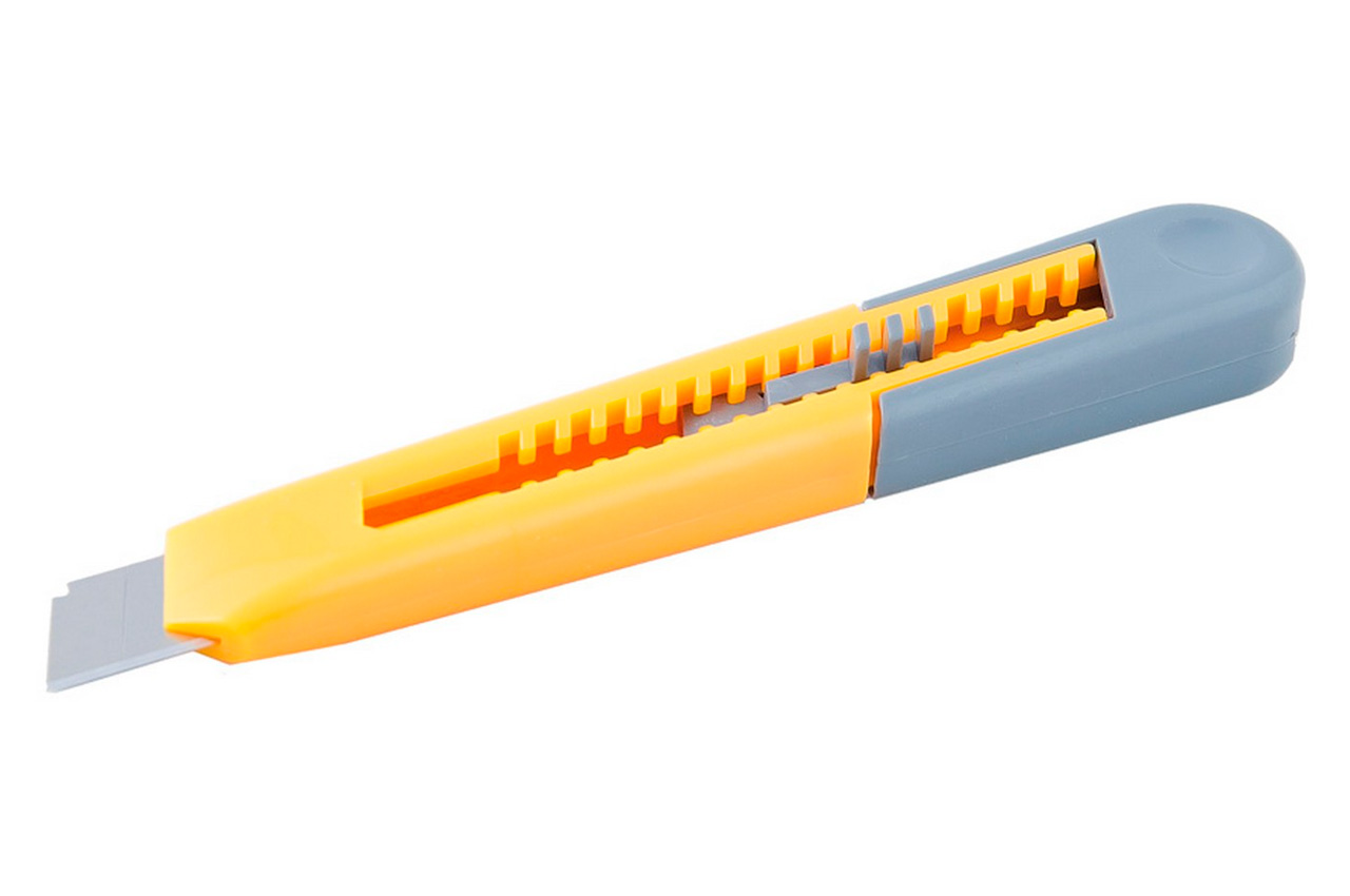 Нож 18 мм, пластиковый, кнопочный фиксатор.