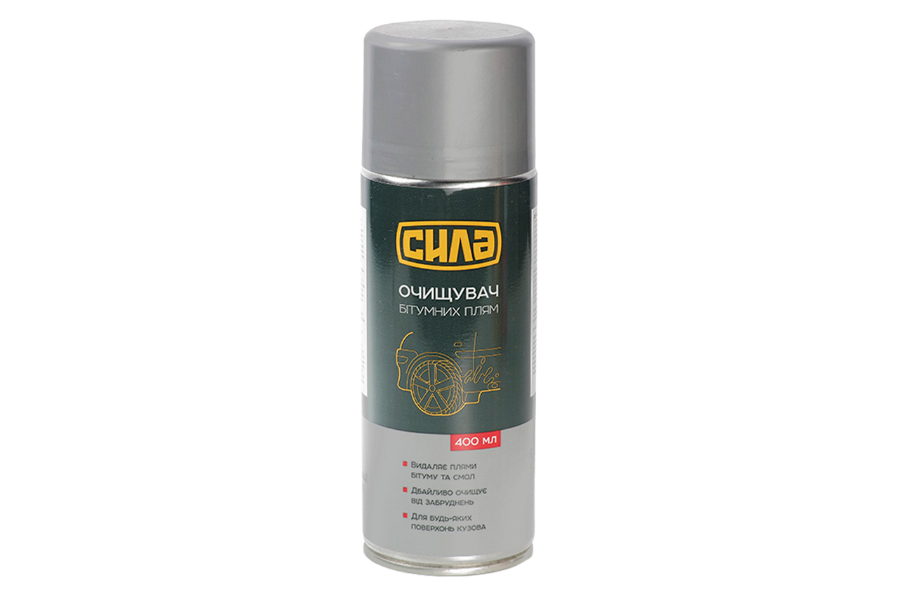 Очиститель битумных пятен Сила - сильнодействующий продукт для удаления органических загрязнений, битума, смолы. Не оставляет пятен и разводов. Безвреден для лаковых покрытий.