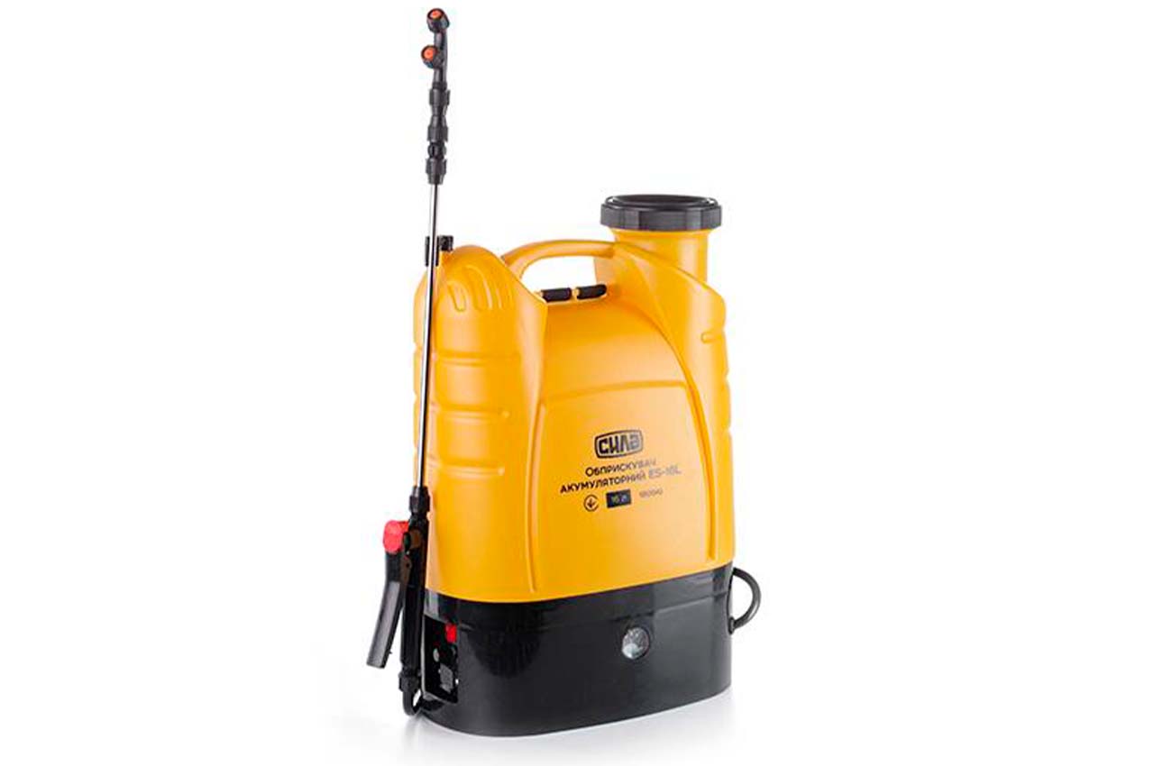 Опрыскиватель аккумуляторный Сила - оснащен баком объемом 16 изготовленным из ударопрочного полипропилена. Устройство питается от аккумуляторной батареи 12 В. На одном заряде инструмент способен проработать от 2 до 3 часом, при этом время полной зарядки составляет 8-12 часов. Опрыскиватель оборудован индикатором заряда аккумулятора для удобной работы. Модель комплектуется 4 насадками: душевой, душевой регулируемой, туманообразующей двойной и веерной. Предназначена для работы с растворами ядохимикатов и дезинфицирующих средств, воды.