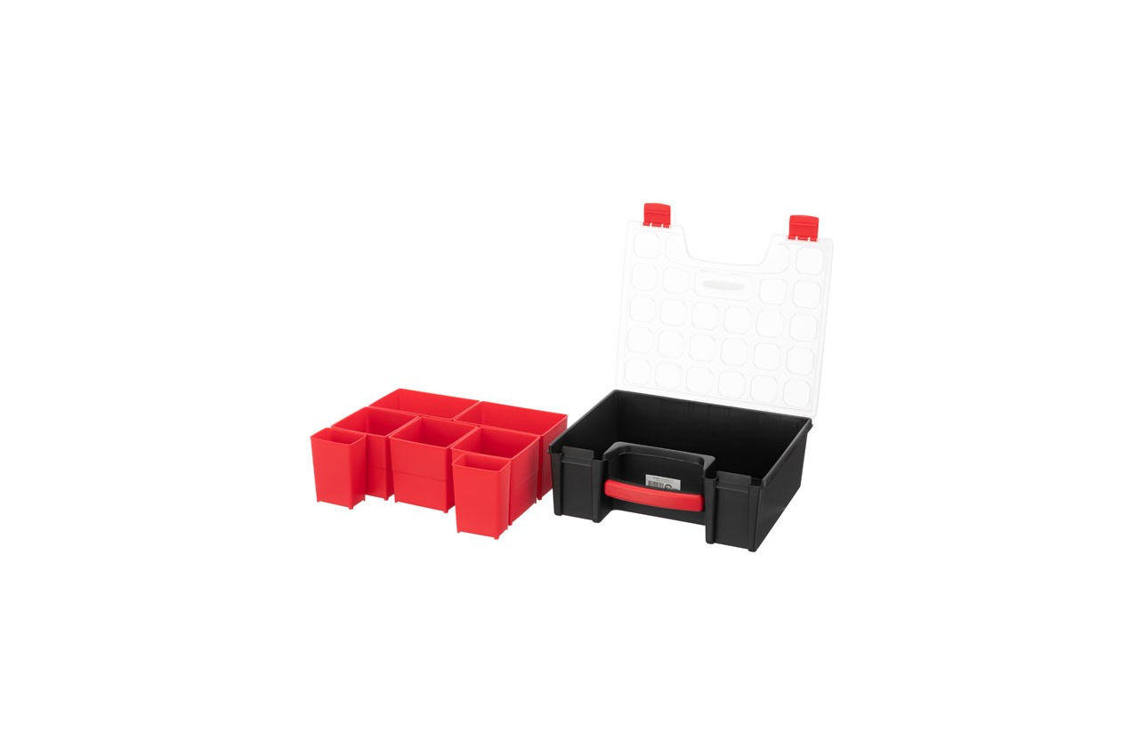 Удобный и вместительный органайзер BX-4032 (31.5х27х11 см) подходит для хранения и транспортировки небольших предметов (крепежных элементов, мелких инструментов, метизов, фурнитуры, запчастей, рыболовных принадлежностей и прочих мелочей). Особенности: Вместительный органайзер с двумя надежными замками. Ничего не выпадает, не перемешивается, благодаря отдельным секциям. Глубокие съемные лотки (секции), толщиной 11 см, могут применятся как отдельные единицы для хранения мелких деталей вне органайзера. Органайзер изготовлен из прочного, толстого пластика. Вмещает в себе 7 объемных лотков (секций) различных размеров. Большие и меньшие лотки можно менять местами, комбинировать их расположение для максимального удобства использования. В этот органайзер можно положить любой инструмент длиной до 31 см и шириной до 27 см, благодаря съёмным лоткам. Два замка надежно прижимают крышку и не дают пересыпаться даже небольшим деталям. Крышка органайзера изготовлена из прочного полипропилена и устойчива к сколам. Прозрачность помогает быстро находить необходимые предметы. Удобная ручка усилена и повторяет форму руки, что очень удобно при транспортировке. Количество секций: 7 шт; Габаритные размеры: 315х270х110 мм