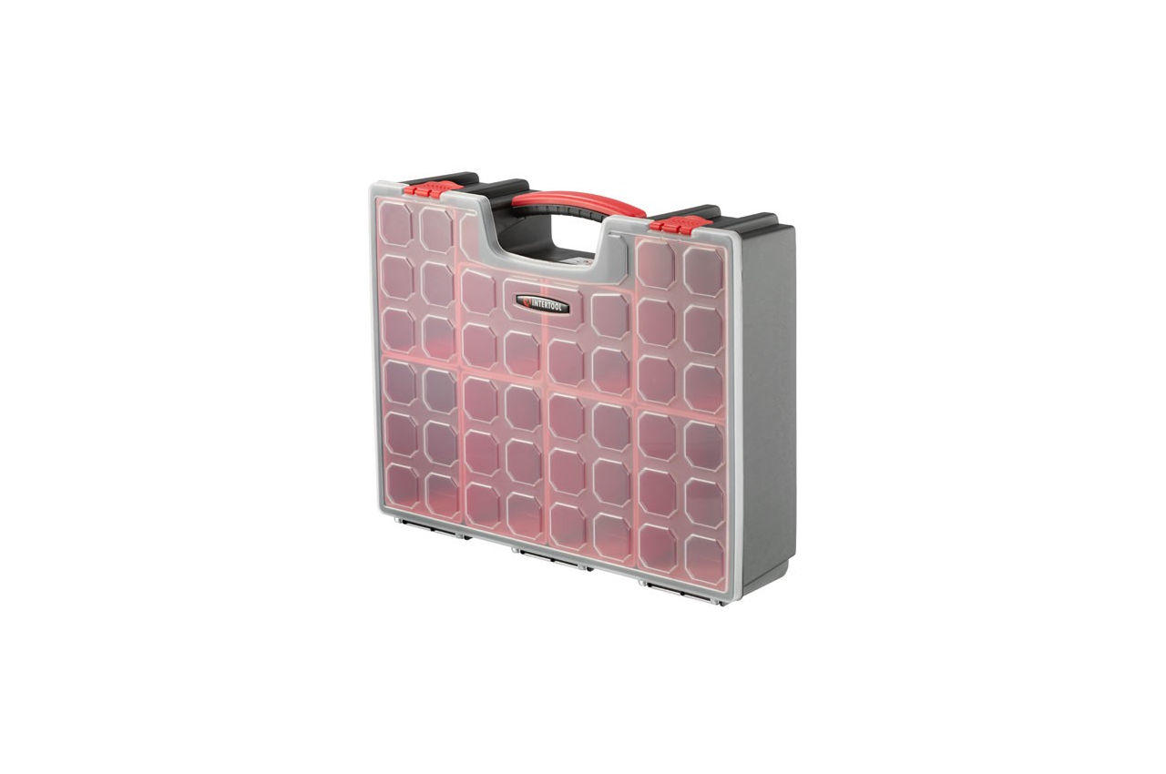 Удобный и вместительный органайзер BX-4034 (41.5х33х11 см) подходит для хранения и транспортировки небольших предметов (крепежных элементов, мелких инструментов, метизов, фурнитуры, запчастей, рыболовных принадлежностей и прочих мелочей). Особенности: Вместительный органайзер с двумя надежными замками. Ничего не выпадает, не перемешивается, благодаря отдельным секциям. Глубокие съемные лотки (секции), толщиной 11 см, могут применятся как отдельные единицы для хранения мелких деталей вне органайзера. Органайзер изготовлен из прочного, толстого пластика. Вмещает в себе 8 объемных лотков (секций) разного размера. Большие и меньшие лотки можно менять местами, комбинировать их расположение для максимального удобства использования. В этот органайзер можно положить любой инструмент длиной до 41 см и шириной до 33 см, благодаря лоткам, которые снимаются. Два замка надежно прижимают крышку и не дают пересыпаться даже небольшим деталям. Крышка изготовлена из прочного полипропилена и устойчива к сколам. Прозрачность крышки помогает быстро находить необходимые предметы. Удобная ручка усилена и повторяет форму руки, что очень удобно при транспортировке. Количество секций: 8 шт; Габаритные размеры: 415х330х110 мм