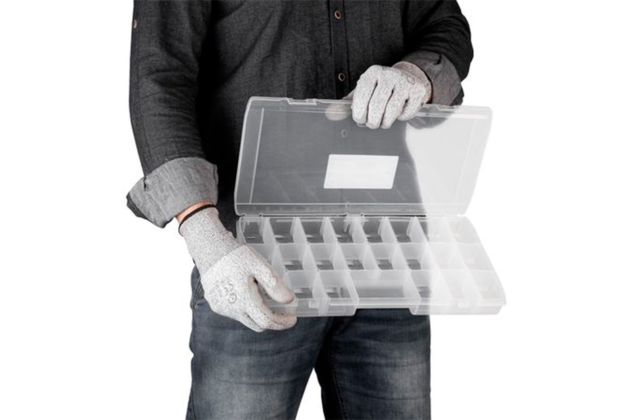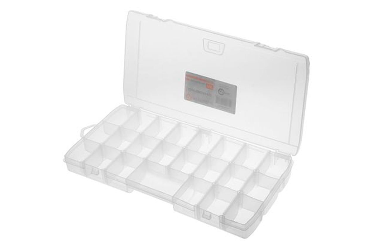 Органайзер можно использовать для хранения микросхем, гвоздей, винтов, гаек, болтов, шайб, сережек, бусин, канцелярских кнопок, зажимов, рыболовных снастей и других мелких деталей, предметов. Выполнен из прочного прозрачного пластика. Габаритные размеры: 385x200x50 мм