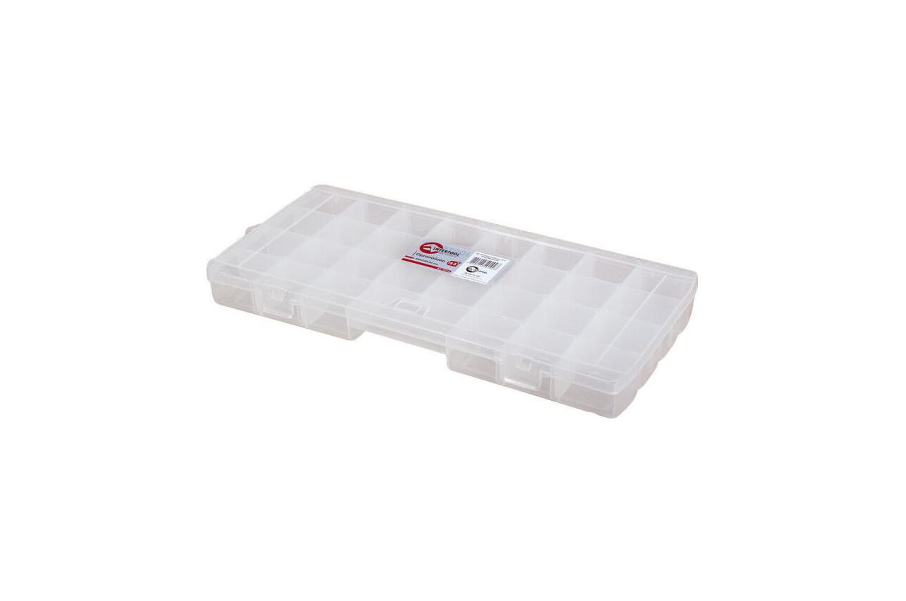 Органайзер можно использовать для хранения микросхем, гвоздей, винтов, гаек, болтов, шайб, сережек, бусин, канцелярских кнопок, зажимов, рыболовных снастей и других мелких деталей, предметов. Габаритные размеры: 490x240x50 мм