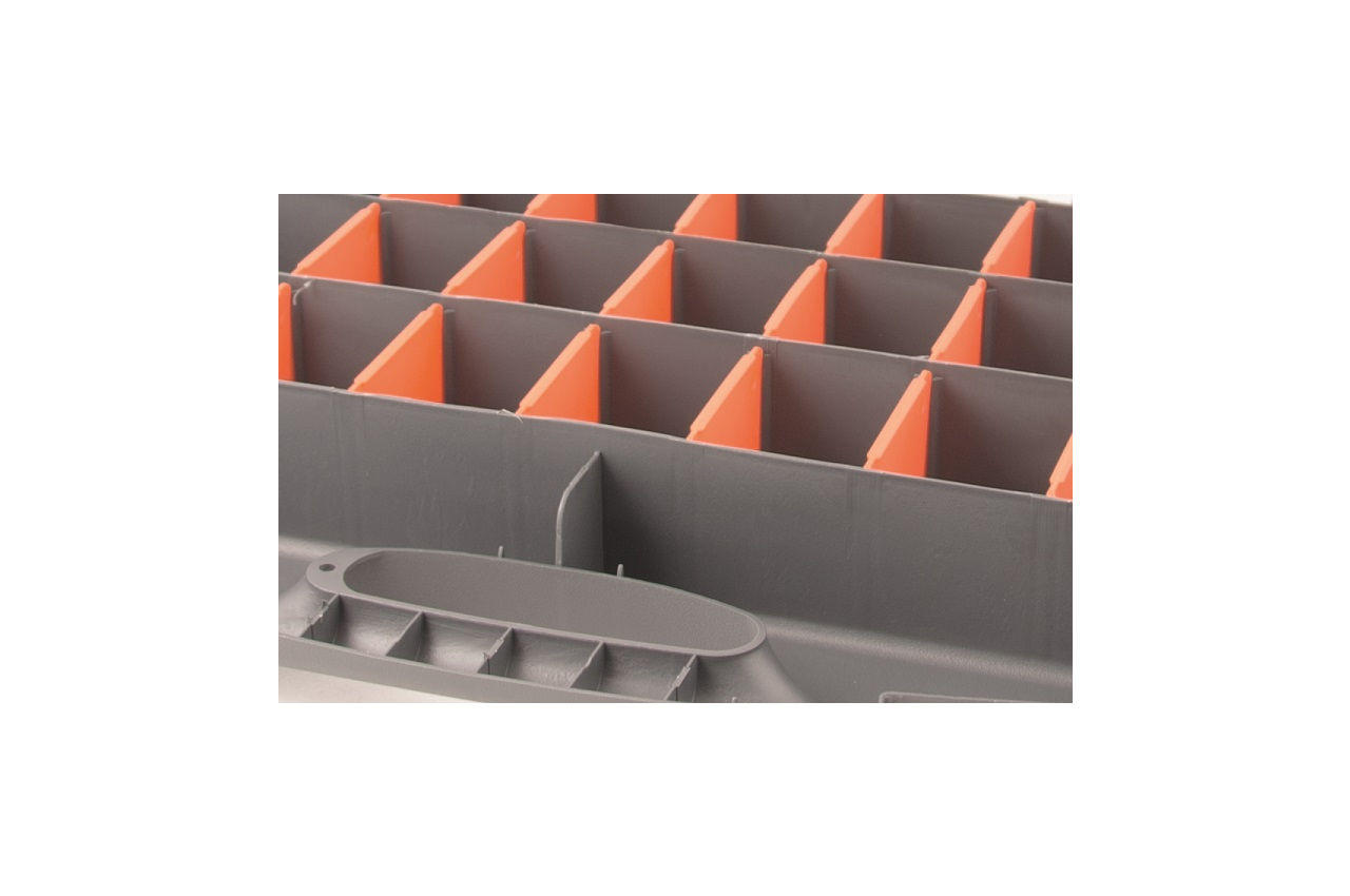 Предназначается для хранения и крепления мелких предметов. Органайзер односторонний, 21 секция. Ударопрочный ABS пластик.