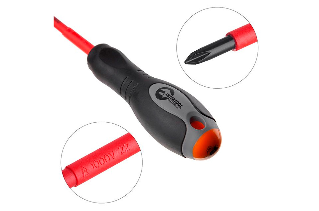 Отвертка Intertool - крестовая PH2 х 100 мм 1000 В диэлектрическая