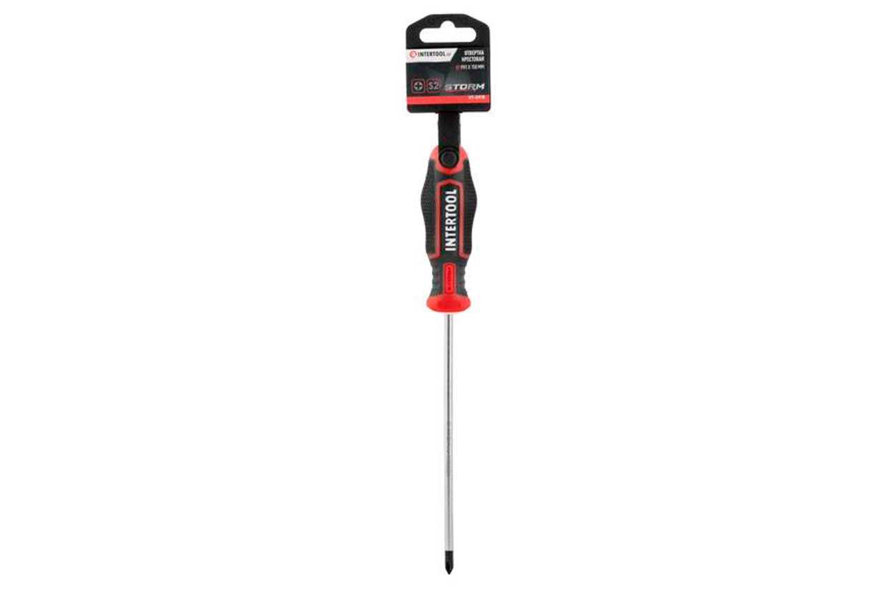 Профессиональная отвертка STORM изготовлена по последним технологиям и соответствует высоким запросам мастеров. Предназначена для интенсивной работы на СТО, в мастерских, в точках сервисного обслуживания и в других отраслях, где необходимо проводить постоянные работы с применением высоких нагрузок. Также отвертка станет отличным помощником в домашнем арсенале инструмента и прослужит вам долгие годы! Высокое качество стали Стержень отвертки изготовлен из высокопрочной стали S2, которая считается лучшей в своем сегменте. В составе этой стали присутствуют молибден и кремний, которые придают изделию высокое сопротивление к нагрузкам и низкий порог обратимой деформации. Также сталь S2 обладает высокой антикоррозийной стойкостью. Конструкция отвертки продумана до мелочей Стержень глубоко посажен в рукоятку и крепиться в двух местах, что исключает возможность срыва. Намагниченный наконечник Отвертка имеет высокопрочный магнитный наконечник, который позволяет комфортно устанавливать и демонтировать крепеж. Он устойчив к истиранию граней и предназначен для проведения работ с высокой нагрузкой. Удобная рукоятка Форма ручек обеспечивает максимальную эффективность от приложенного усилия. Трехкомпонентная рукоятка изготовлена из термопластичной резины (TPR) и гарантирует комфорт при работе даже влажными или скользкими руками. Легкая, прочная, бензомаслостойкая ручка удобно лежит в ладони во время работы Яркая маркировка на конце рукоятки позволяет быстро подобрать необходимый тип и размер отвертки. Длина отвертки: 150 мм; Материал рукоятки: TPR резина; Материал стержня отвертки: сталь S2