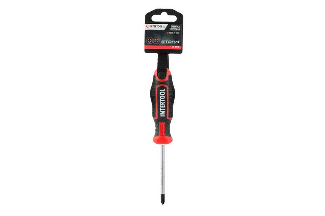 Профессиональная отвертка STORM изготовлена по последним технологиям и соответствует высоким запросам мастеров. Предназначена для интенсивной работы на СТО, в мастерских, в точках сервисного обслуживания и в других отраслях, где необходимо проводить постоянные работы с применением высоких нагрузок. Также отвертка станет отличным помощником в домашнем арсенале инструмента и прослужит вам долгие годы! Высокое качество стали Стержень отвертки изготовлен из высокопрочной стали S2, которая считается лучшей в своем сегменте. В составе этой стали присутствуют молибден и кремний, которые придают изделию высокое сопротивление к нагрузкам и низкий порог обратимой деформации. Также сталь S2 обладает высокой антикоррозийной стойкостью. Конструкция отвертки продумана до мелочей Стержень глубоко посажен в рукоятку и крепиться в двух местах, что исключает возможность срыва. Намагниченный наконечник Отвертка имеет высокопрочный магнитный наконечник, который позволяет комфортно устанавливать и демонтировать крепеж. Он устойчив к истиранию граней и предназначен для проведения работ с высокой нагрузкой. Удобная рукоятка Форма ручек обеспечивает максимальную эффективность от приложенного усилия. Трехкомпонентная рукоятка изготовлена из термопластичной резины (TPR) и гарантирует комфорт при работе даже влажными или скользкими руками. Легкая, прочная, бензомаслостойкая ручка удобно лежит в ладони во время работы. Яркая маркировка на конце рукоятки позволяет быстро подобрать необходимый тип и размер отвертки. Длина отвертки: 75 мм; Материал рукоятки: TPR резина; Материал стержня отвертки: сталь S2