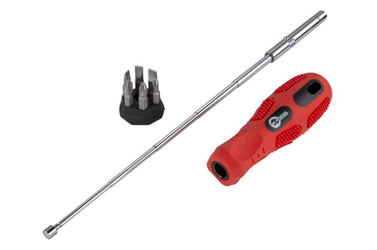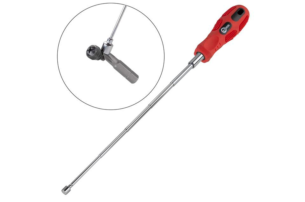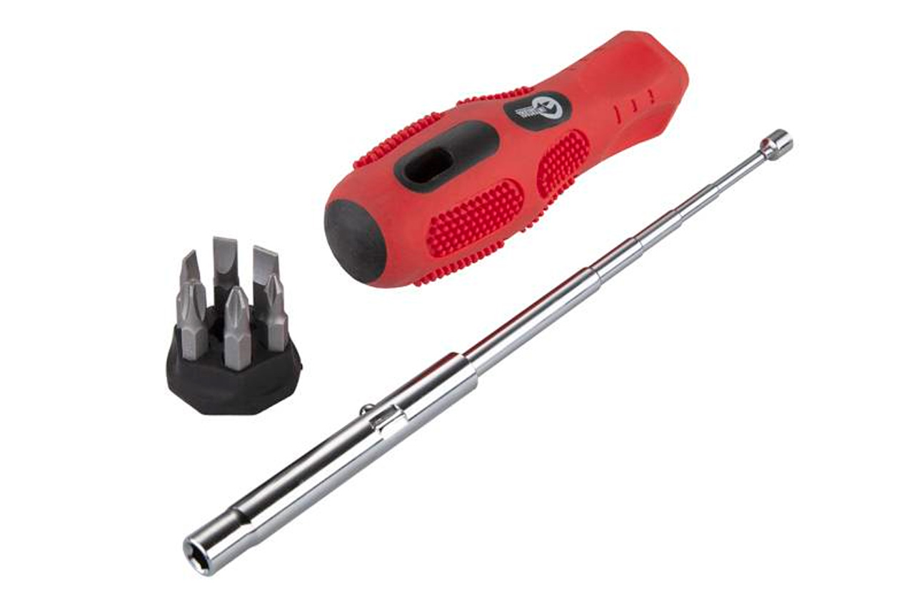 Отвертка телескопическая 7 в 1. Тип насадок SL: 5, 6, 7 мм; PH1, PH2, PH3. Количество насадок: 6 ед.
