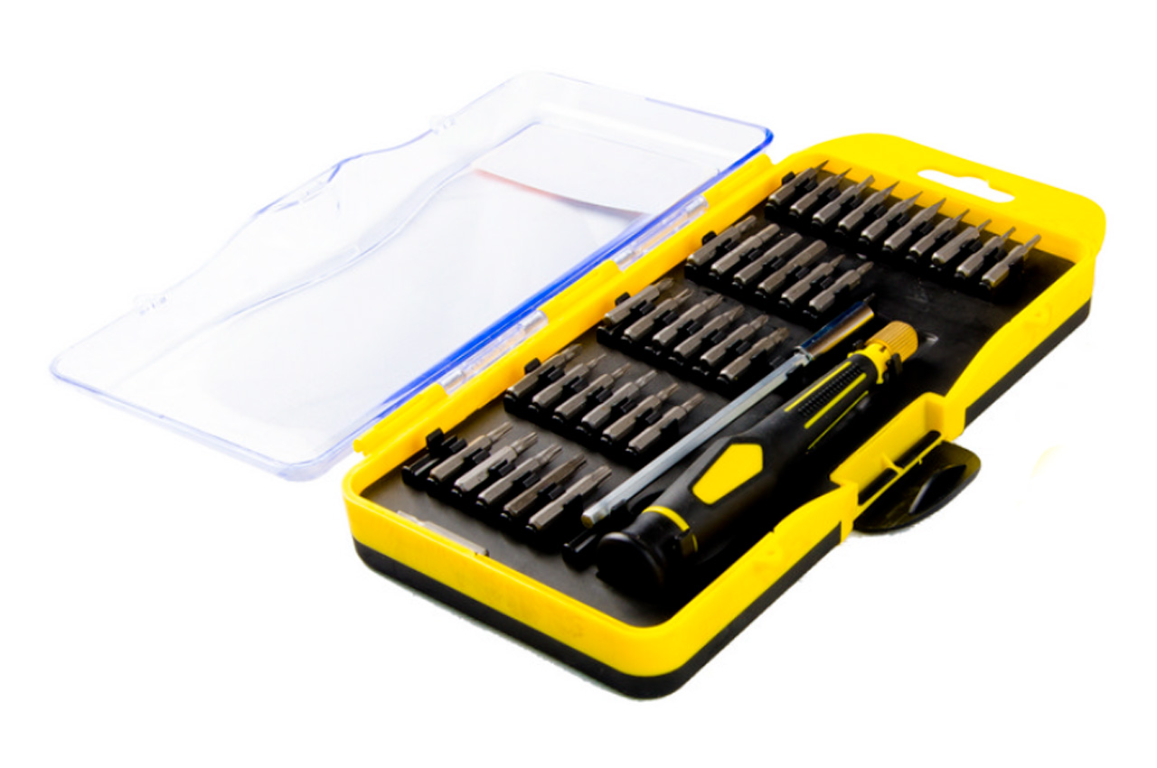 Отвертка переставная предназначена для точных механических работ и операций с мелкими деталями. Включает предотвращающую проскальзывание двухкомпонентную (резина+пластик) рукоятку, удлинитель и 34 насадки (SL2.5, SL3, SL3.5, SL4, SL2, SL1, SW0.9, SW1.3, SW1.5, SW2, SW2.5, SW3, SW3.5, SW4, PH0 х 4шт., PH1 х 2шт., PZ0, PZ1, PZ2, T5,T6, T7, T8, T9 х 2шт., T10, T15 х 2шт., T20 х 2шт.).