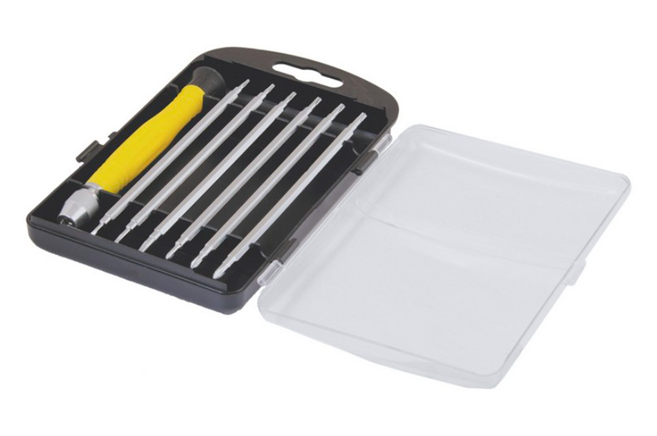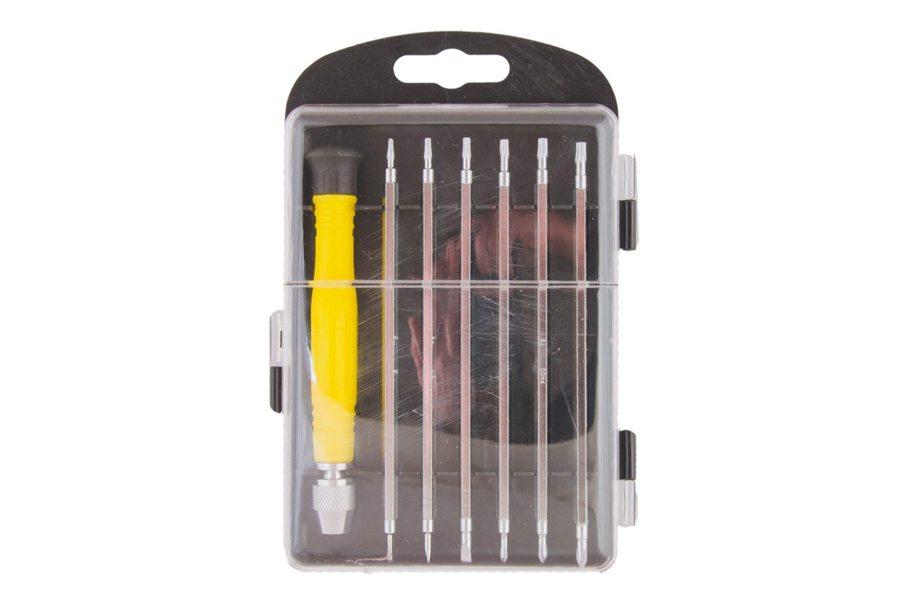 Предназначена для монтажа и демонтажа резьбовых соединений. Включает в себя отвертку, 6 двусторонних бит и пластиковую коробочку.