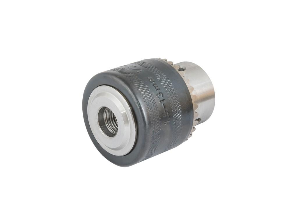 Патрон для дрели с ключом 1/2"- 20, 1.5-13 мм. • высокоточная конструкция губок обеспечивает надежный контакт • планетарный подшипник обеспечивает плавный ход металлической зажимной муфты • губки и шайбы изготовлены из закаленной стали и имеют высокую износостойкость • высокая сила зажима оснащения • используется для различных типов электрических дрелей Диапазон сверл 1.5-13 мм