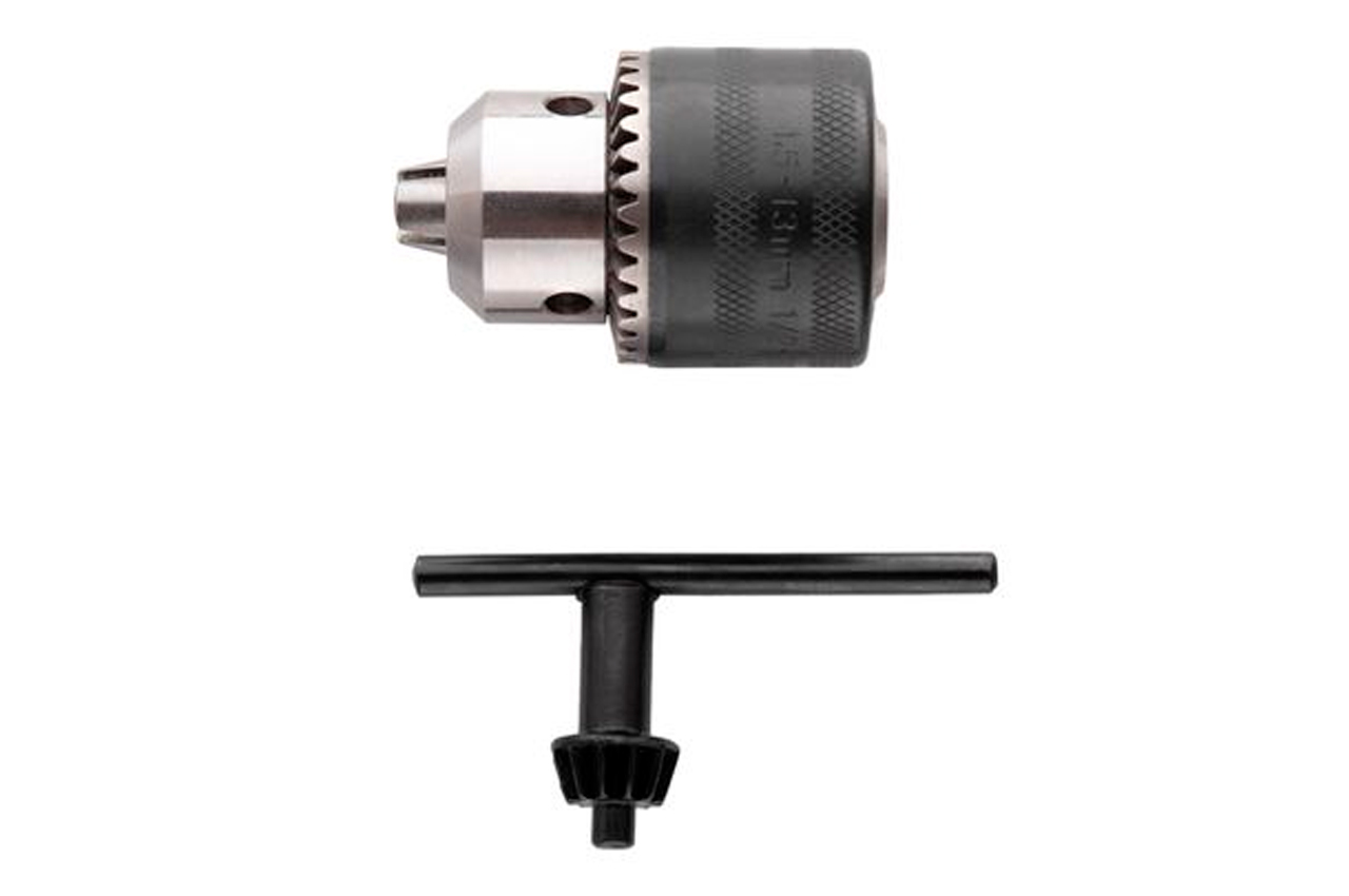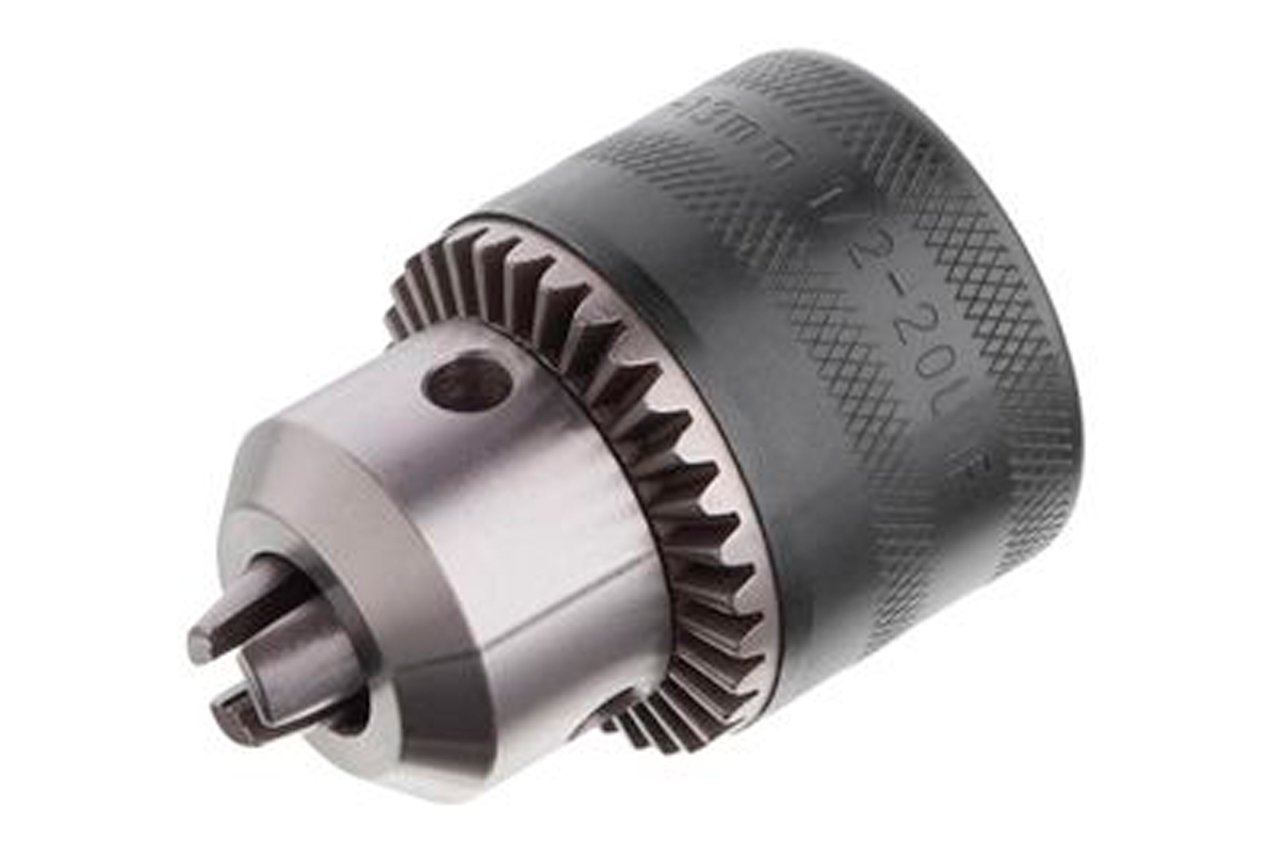 Патрон трехкулачковый с ключом. Под шпиндель 1/2" x 20 (дюймовая мелкая резьба). Шпиндель: 1/2" x 20; Диаметр сверла: 1,5-13 мм