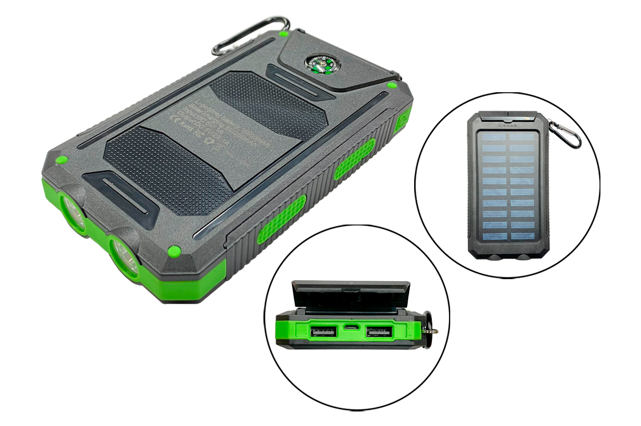Павербанк солнечный 16000 mAh с фонарём и компасом (ударопрочный, влагозащита)