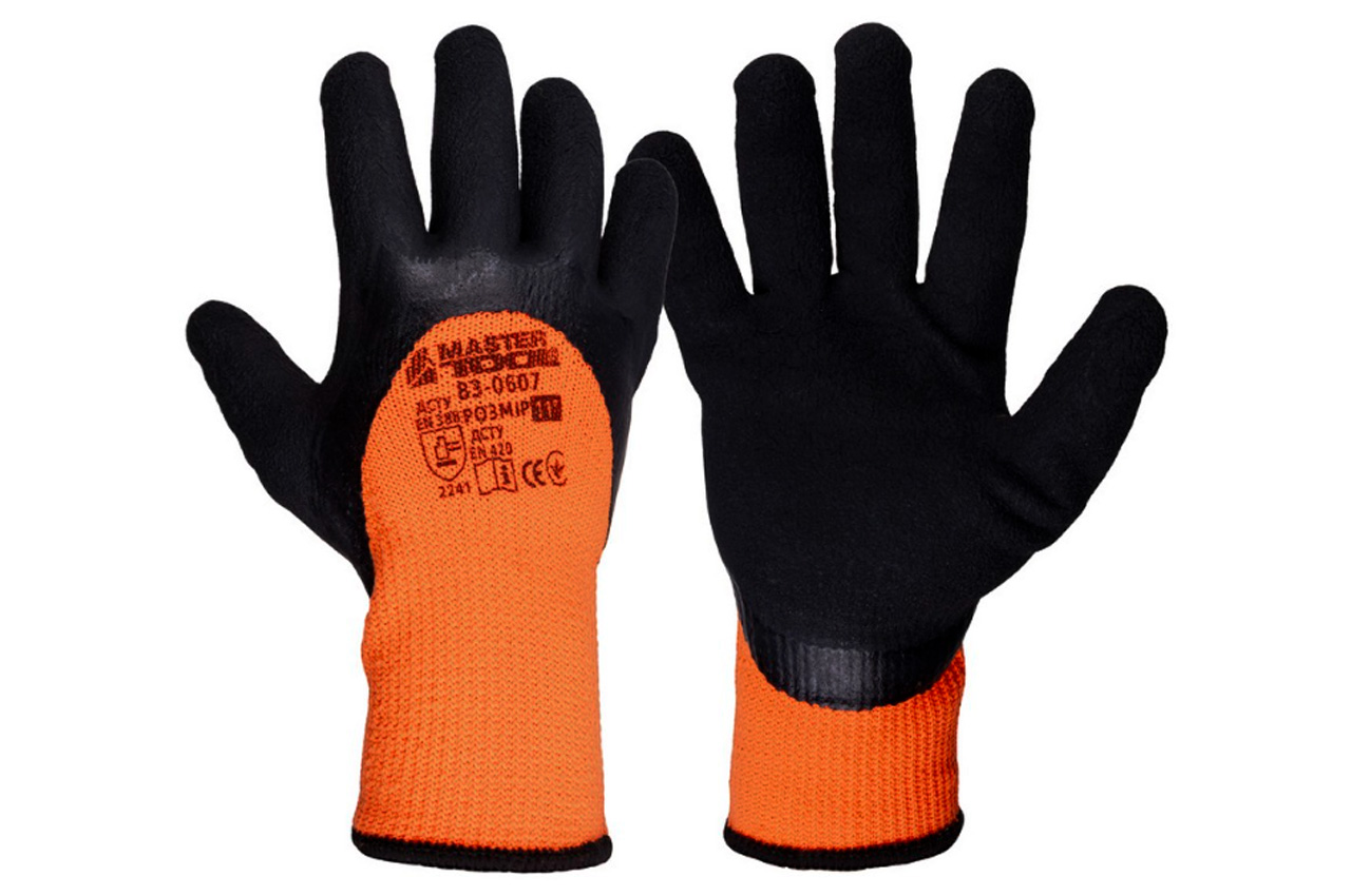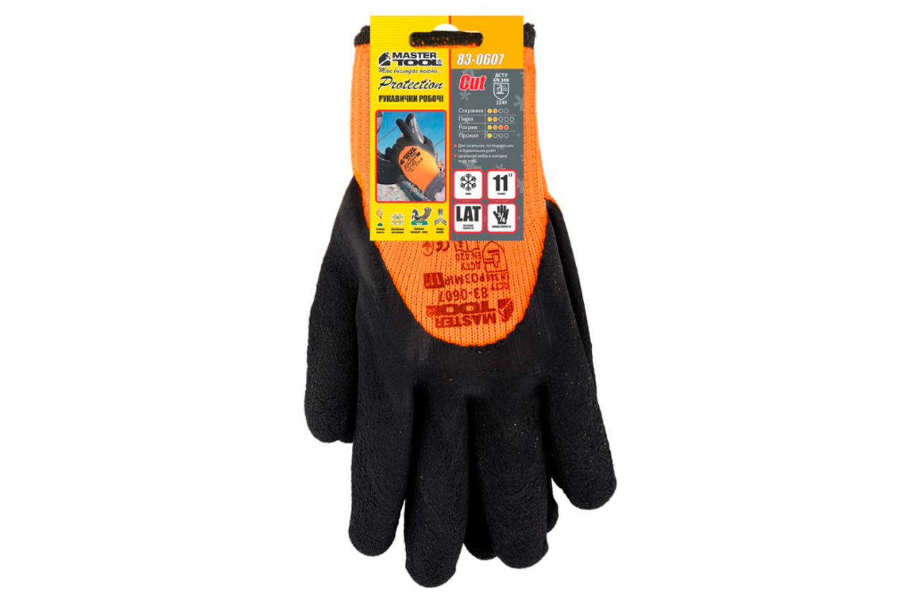 Перчатка Mastertool - латексная вспененная утепленная 11" (оранжево-черная)