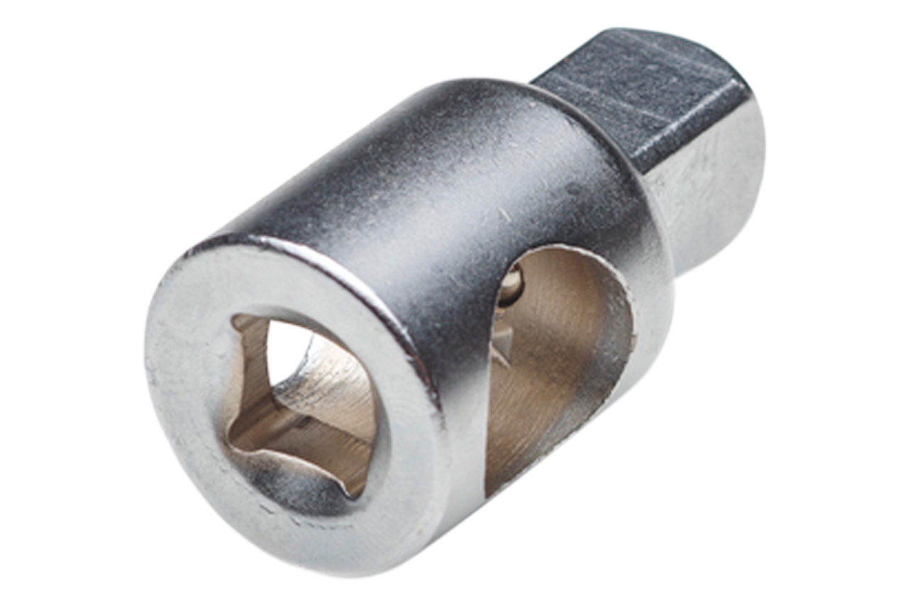 Переходник (адаптер) с квадрата 1/2" на 3/8". Хром-ванадиевая сталь. Для фиксации в другом инструменте, квадрат переходника имеет подпружиненный металлический шарик. Переходник: 3/8“ х 1/2“