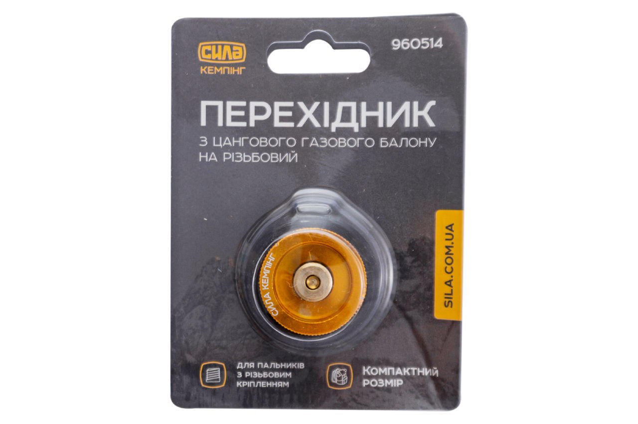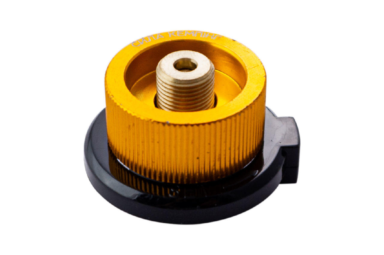 Переходник Сила - с цангового баллона газового на резьбовой - позволяет перейти с форсунки типа цангового баллона на форсунку резьбового одноразового баллона. Совместим со всеми горелками работающими от одноразовых резьбовых баллонов.