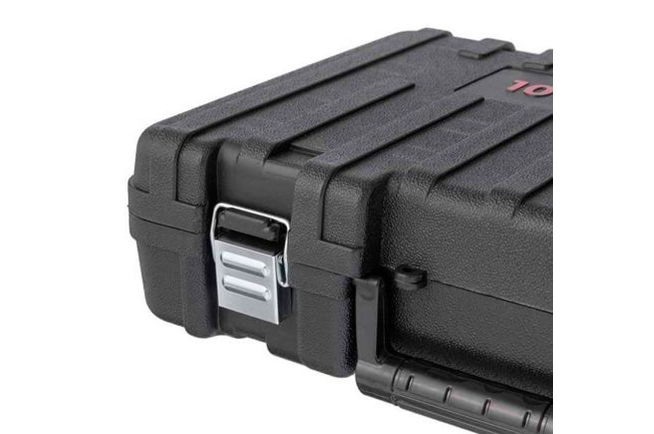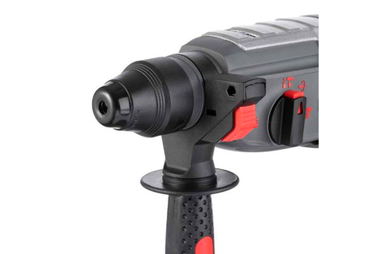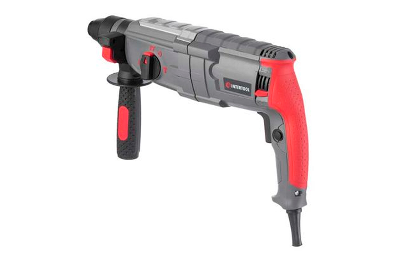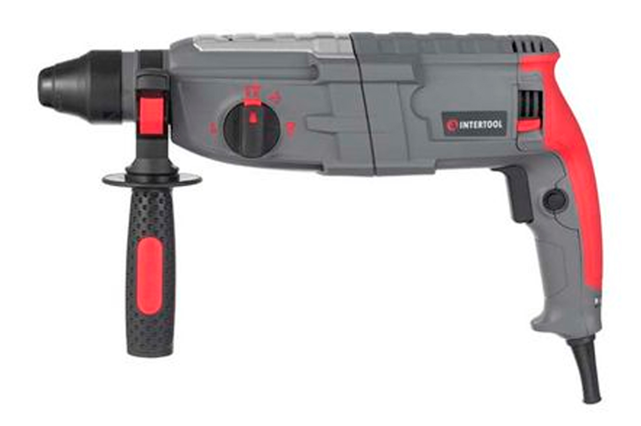 Перфоратор DT-0185 – это отличный помощник дома во время ремонта, также выполняет любые монтажные, отделочные и строительные работы в бытовых условиях. Эта модель перфоратора с системой крепления буров SDS-Plus и горизонтальным расположением двигателя имеет компактные габариты с идеальной балансировкой в руке. Электродвигатель мощностью 1000 Вт отлично работает с твердыми материалами, такими как: бетон, кирпич, камень. Частота ударов – 5100 уд/мин, максимальная энергия – 3,5 Дж, легко справляется с кирпичной кладкой, откалывает штукатурку, штробит стены, потолок, пол и пр. Три режима работы Сверление Сверление с ударом Удар (с возможностью установки положения зубила) В режиме сверления перфоратор развивает 1300 об/мин и проделывает отверстия в стали – 13 мм, в бетоне – 28 мм, дереве – 40 мм. Скорость работы регулируется с помощью курка на ручке. Также для удобства при выполнении длительных работ предусмотрен фиксатор кнопки включения. Кроме вышеперечисленных режимов работы, в перфораторе предусмотрен реверс, который необходим при заклинивании оснастки, для ее освобождения. Перфоратор оснащен боковой рукояткой, предназначенной для удобного перехвата инструмента в работе. Рукоятка может быть установлена под левую или правую руку для комфортного использования. Прорезиненный надежный сетевой шнур износостойкий, на входе в инструмент усилен и защищен от перегибов с помощью вращательного элемента. Длина шнура (290 мм) позволяет работать без дополнительных удлинителей. Перфоратор и все комплектующие аксессуары упакованы в надежный кейс с дополнительными ребрами жесткости для большей прочности. Металлические замки на кейсе уберегут от случайного раскрытия и долго прослужат, широкая ручка на кейсе позволит удобно переносить перфоратор и всю оснастку. Особенности: Производительный и компактный; Быстрая смена буров с системой SDS-plus; Высокое качество деталей и сборки; Защита от перегрузок при заклинивании; Реверс; Набор аксессуаров (буры, пика, зубило); Прочный кейс с металлическими замками для удобного хранения. Комплектация Перфоратор Боковая рукоятка Глубиномер Буры 6, 8, 10 мм Пика Зубило Инструкция Гарантийный талон Число оборотов холостого хода: 0-1300 об/мин; Потребляемая мощность: 1000 Вт; Частота удара: 0-5100 уд/мин; Количество режимов: 3; Максимальный диаметр сверления: Максимальный диаметр сверления: сталь: 13 ммбетон: 28 ммдерево: 40 мм; Энергия удара: 3.5 Дж