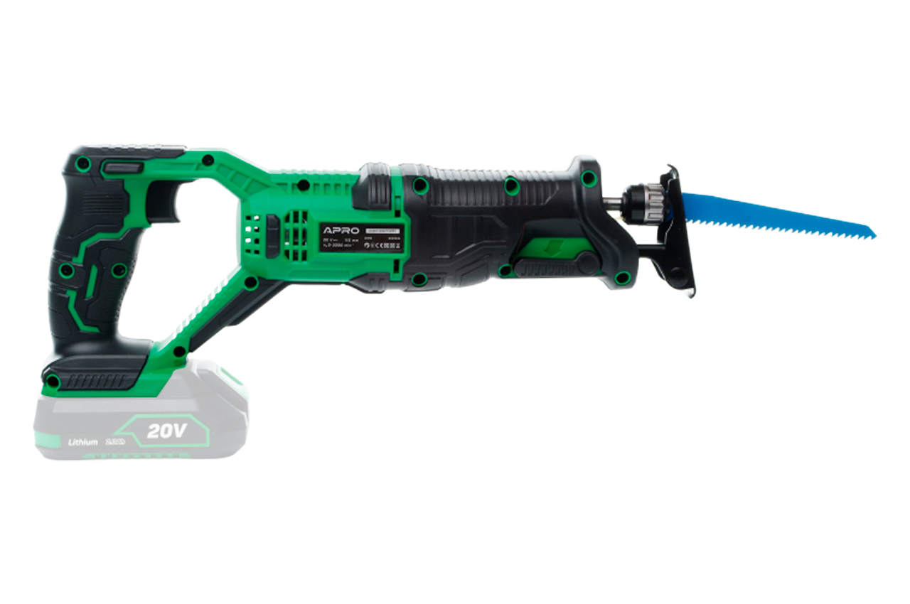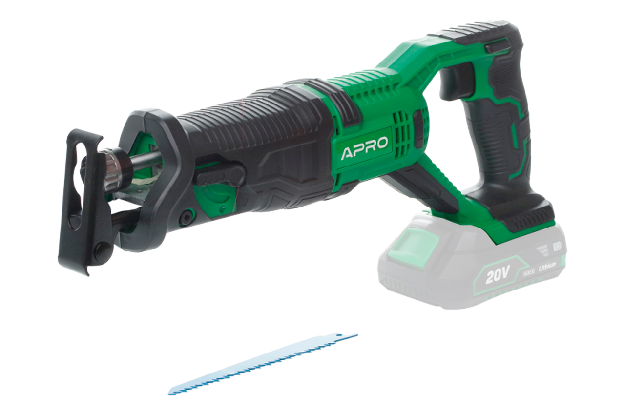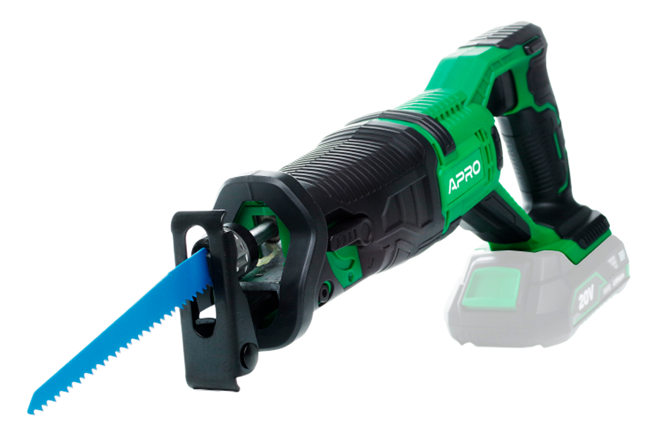 Аккумуляторная сабельная пила Apro 20RS (без АКБ) имеет возможность поворота полотна на 180 градусов. Такая особенность инструмента позволяет использовать инструмент для удобной работы над головой. Шабельная пила – это достаточно универсальный инструмент с широким диапазоном использования как в домашних, бытовых целях, так и профессиональных задачах. К пиле можно использовать разные типы пильных полотен, благодаря которым справитесь с такими материалами как дерево, металл, пеноблок и т.д. Максимальный диаметр пропила металла составляет 10 мм. Кнопка питания оснащена функцией плавного набора колебаний, что помогает подготовиться к выполнению работ и определить необходимый уровень колебаний. Одним из важных факторов пропила является положение маятника, а точность его регулировки – одна из основных составляющих функциональности. Благодаря простоте регулировки, Вы можете охватывать гораздо более широкий спектр работ затрачивая при этом минимум времени.