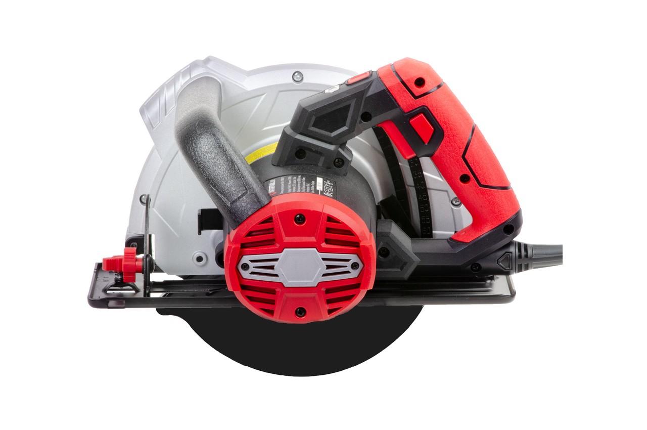 Ручная дисковая пила по дереву (ручная циркулярка) однозначно пригодится в домашнем хозяйстве, в мастерской столяру, профессионалу на работе. Мощная и высокоскоростная Дисковая пила, мощностью 1500 Вт и частотой вращений – 5800 об/мин, легко справляется с твердыми породами деревьев с максимальной эффективностью. Распиливает брус толщиной 65 мм под углом 90⁰, толщиной 43 мм - под углом 45⁰. Надежная Высокоточная сборка инструмента в сочетании с износостойкими комплектующими делают эту дисковую пилу надежным и долговечным помощником. Главным преимуществом инструмента являются качественные и высокопрочные комплектующие, движущиеся части и детали. Усовершенствованный дизайн, удобные ручки с рифлеными поверхностями, это все делает пилу более функциональной и надежной! Удобная Компактный размер циркулярной пилы позволяет легко ею управлять и маневрировать. Две рабочие рукоятки покрыты специальным составом, который исключает скольжение рук. Эластичное, прорезиненное покрытие основной ручки снимает излишние вибрационные колебания и делает работу оператора более комфортной. Безопасная Автоматический прочный закрытый кожух убережет от случайного столкновения Ваших пальцев с режущим диском. Кнопка блокировки выключателя оградит Вас от случайного нажатия и самопроизвольного пуска двигателя. Индикатор сети позволяет визуально контролировать готовность инструмента к работе. Высокоточная Опорная плита с регулировкой глубины, для особо точного пропила. Угол наклона реза можно выставить от 0⁰ до 45⁰, относительно опорной плиты. Наличие лазерной линейки повышает точность и аккуратность работы во множество раз! Отверстие для вывода стружки Чтобы содержать рабочее место в полной чистоте в пиле предусмотрено отверстие для вывода стружки стандартного диаметра. Вы можете подключить пылесборный мешок либо промышленный пылесос. Попробуйте в работе эту ручную дисковую пилу, и Вы удивитесь насколько быстро, и эффективно она справляется с деревом! Комплектация • Пила дисковая • Диск пильный, 24 зуба • Параллельный упор • Шестигранный ключ Особенности: лазерная направляющая; Диаметр диска: 190*20 мм; Количество зубьев: 24 шт; Потребляемая мощность: 1500 Вт; Скорость вращения: 5800 об/мин; Максимальная глубина пропила: 65 мм/90 град43 мм/45 град.