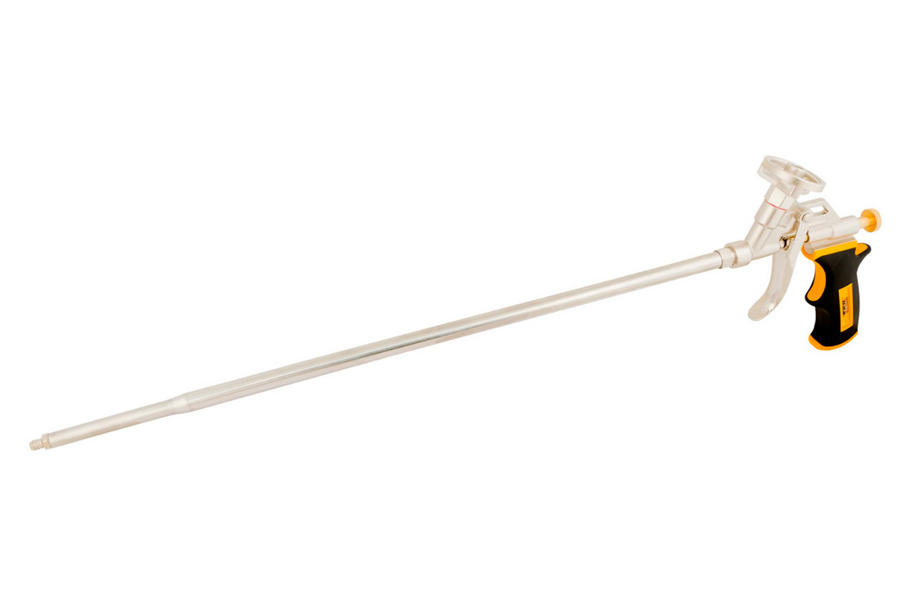 Пистолет используется для работ с профессиональной монтажной пеной. • литой алюминиевый корпус • алюминиевый баллоноприемник • никелевое антикоррозионное покрытие • трубка и игла изготовлены из нержавеющей стали • латунная форсунка • регулятор подачи пены • двухкомпонентная эргономичная ручка