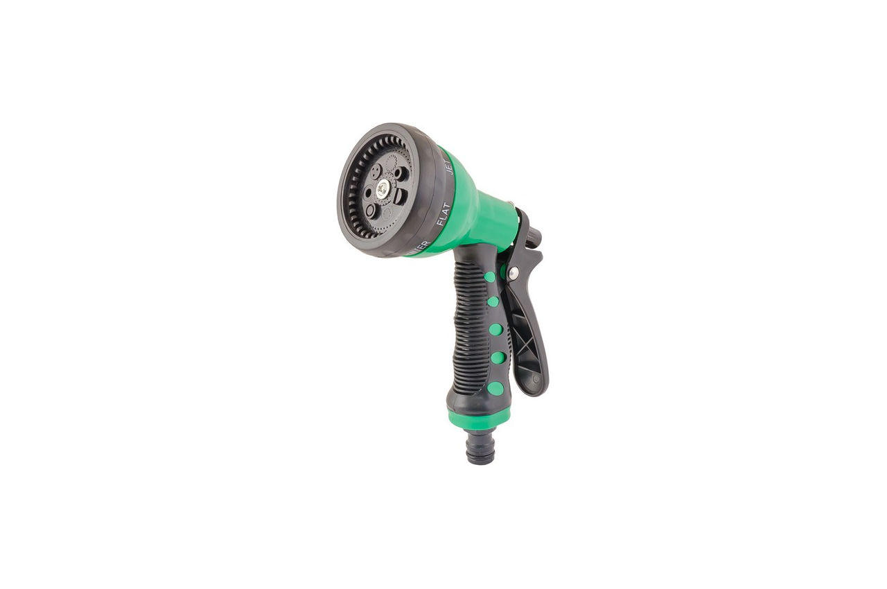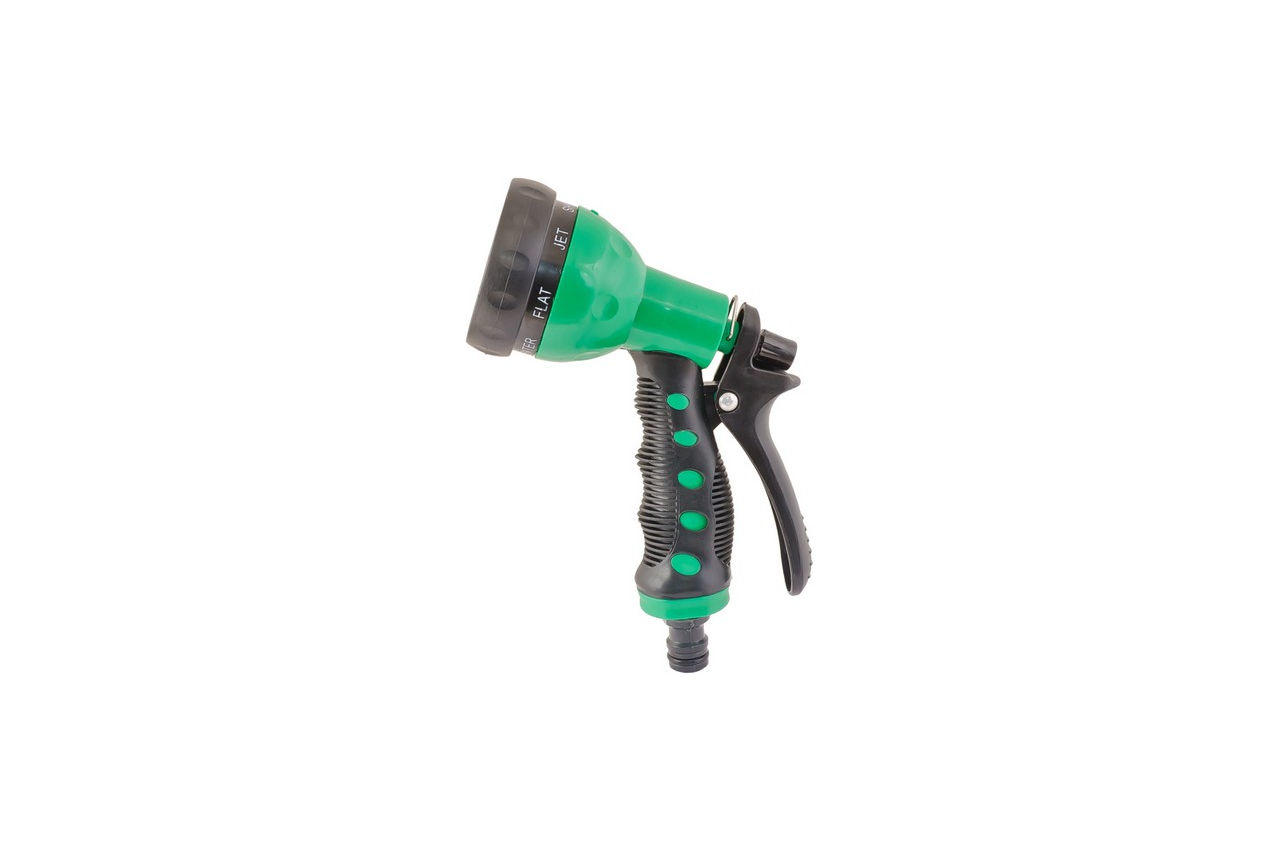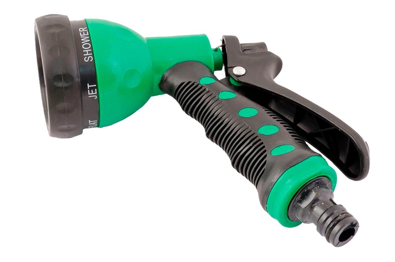 Пистолет для полива изготовлен из ABS пластика. Пистолет имеет семь режимов регулировки потока воды и оснащён соединением под коннектор диаметром ½". Используется для поливочных работ.