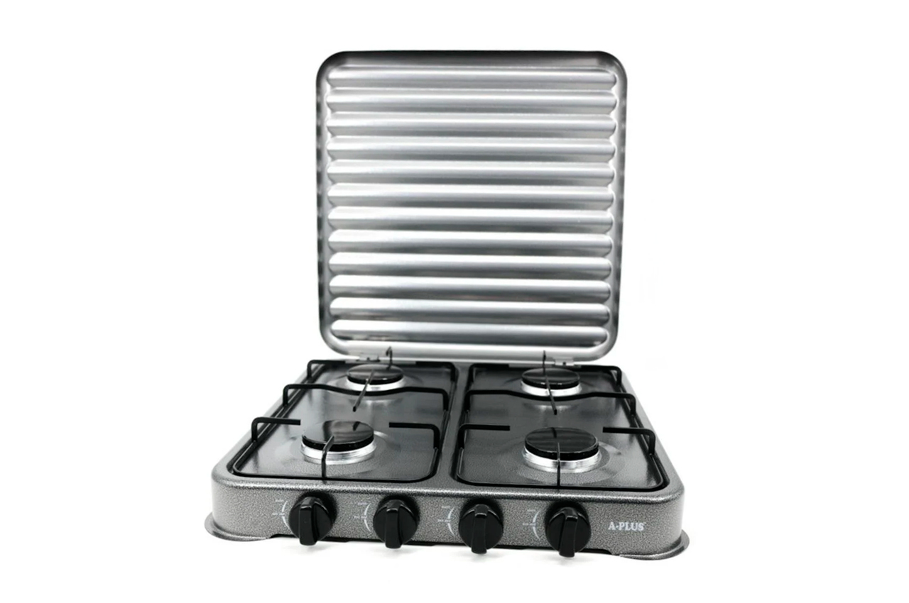 Плита газовая настольная на 4 конфорки 480х480х60мм с крышкой эмаль GRAY