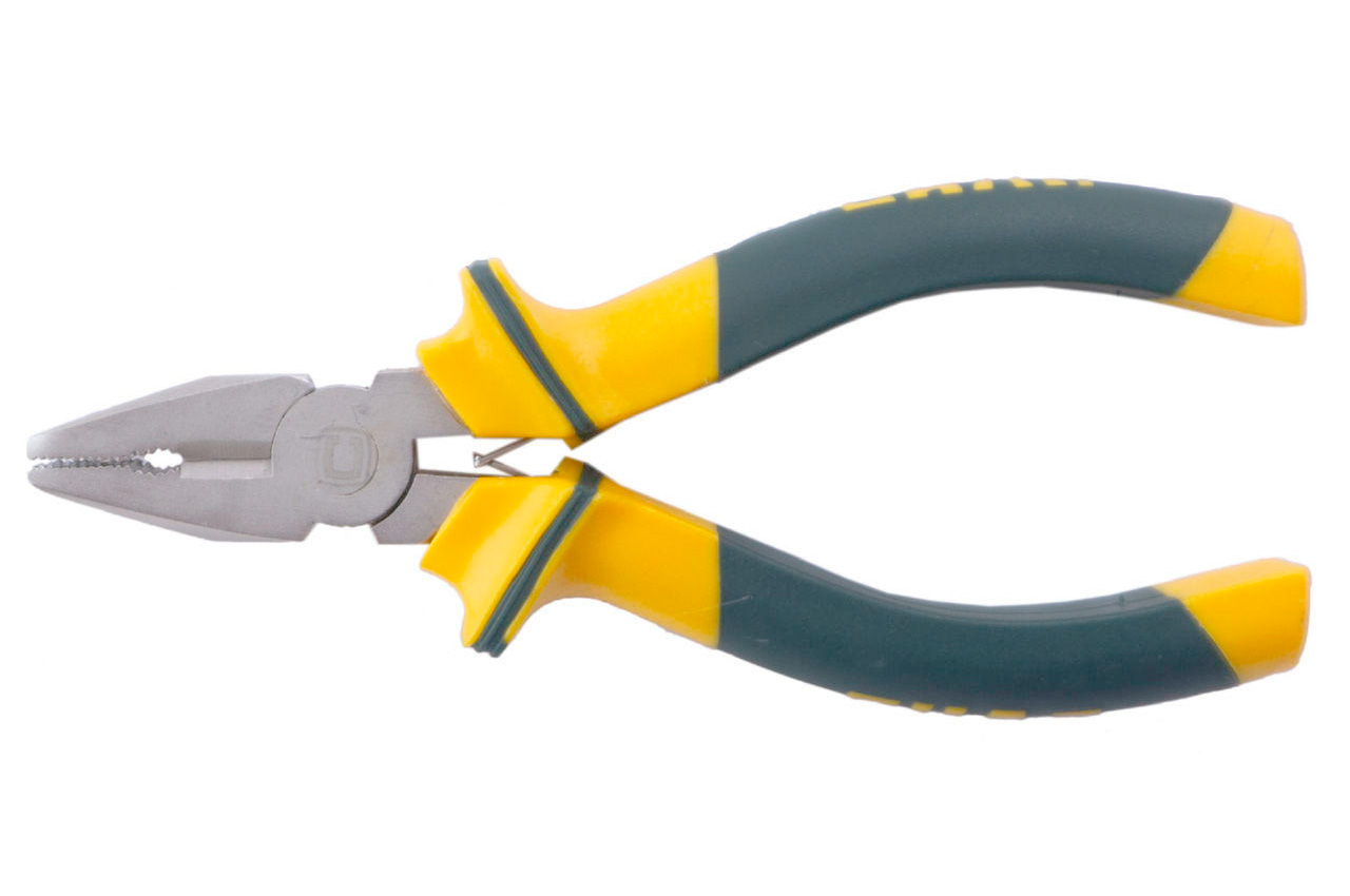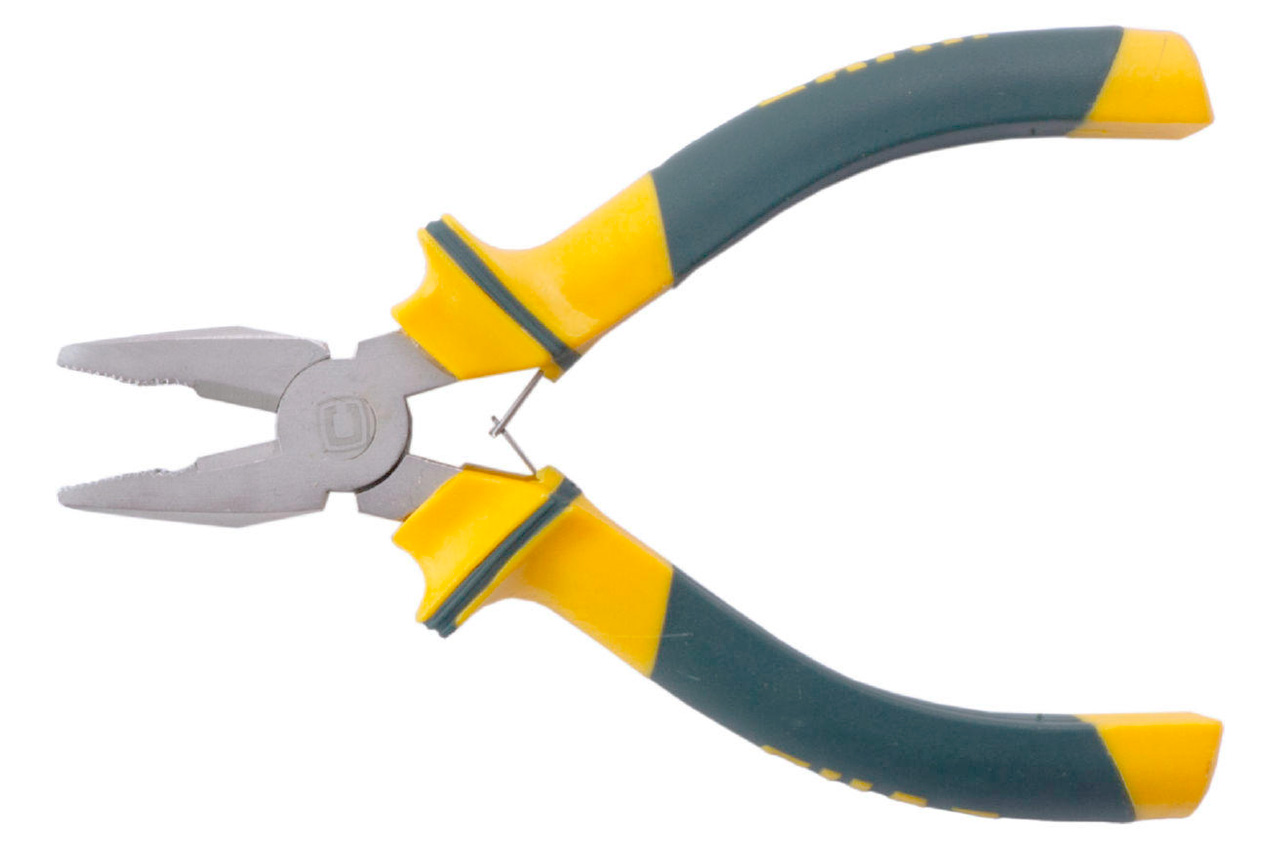 Плоскогубцы малые обрезиненные. Материал рукоятки: пластик, термопластичная резина. Материал: инструментальная сталь. Материал рукоятки: пластик, термопластичная резина