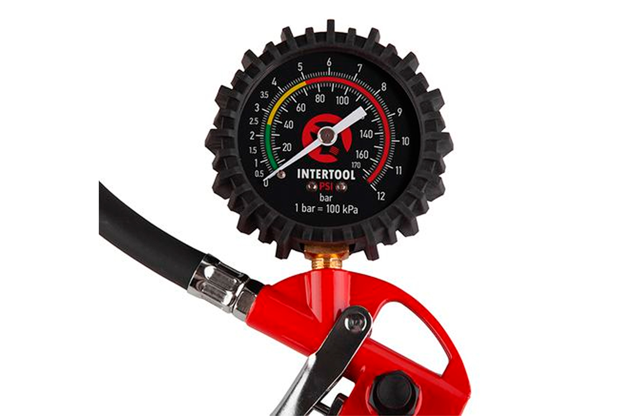 Пистолет для накачки шин универсальное устройство, способное в считанные минуты накачать не только шины и камеры транспортных средств, но и надувные лодки, мячи и т.д. Инструмент оснащен манометром для контроля давления и клапаном сброса воздуха, когда необходимо спустить давление до нужного показателя. Манометр с двумя шакалами PSI и bar для удобства считывания показателей. Для простого подключения к шлангу высокого давления предусмотрен универсальный фитинг для быстроразъемного соединения. Пистолет для подкачки имеет полностью металлический корпус, манометр в резиновом кожухе для надежной защиты от механических повреждений. Также пистолет оснащен латунным наконечником, обеспечивающим полную герметичность и повышенную износостойкость. Рабочее давление: до 10 атм; Диаметр шланга: 6-8 мм