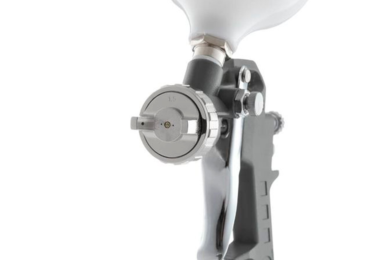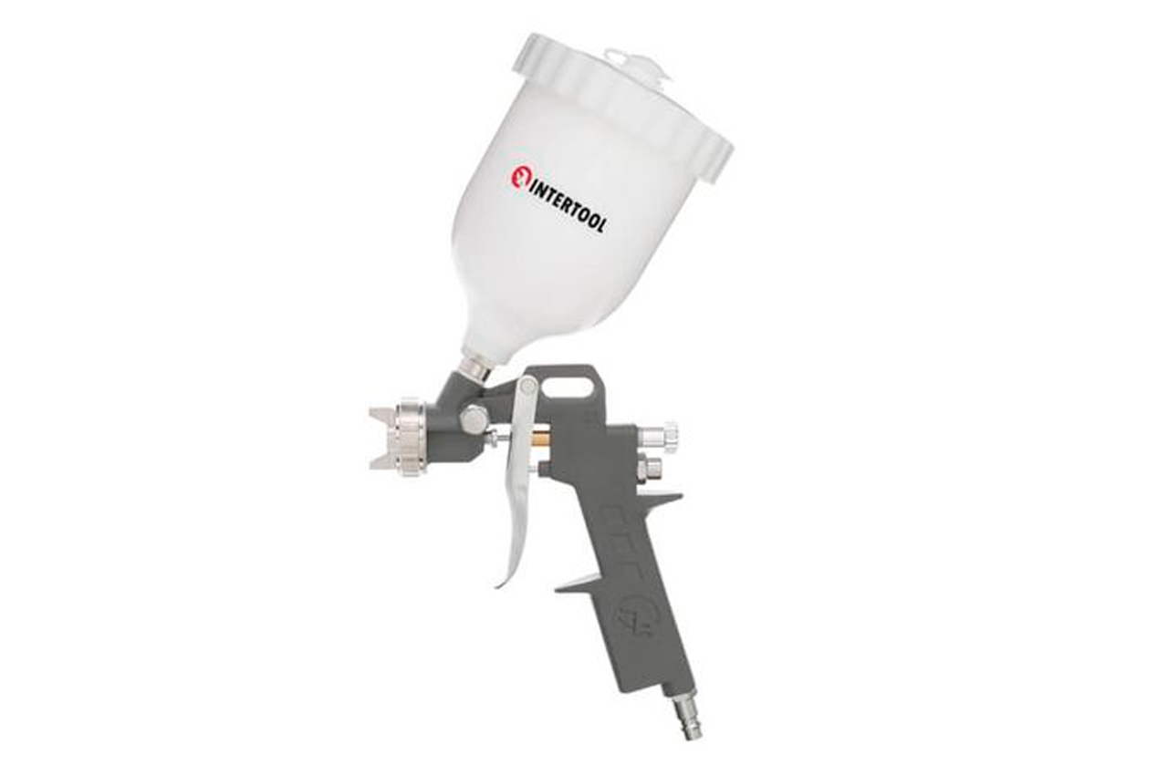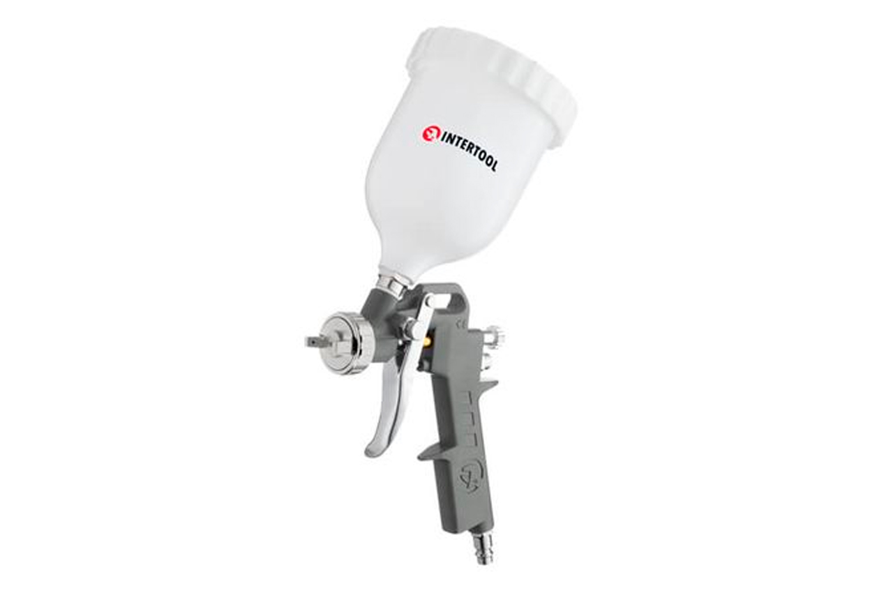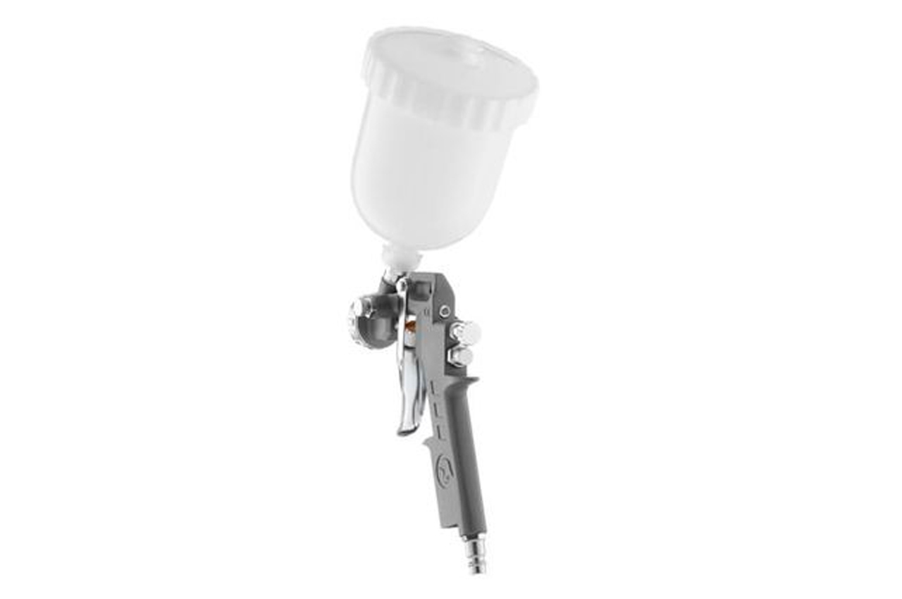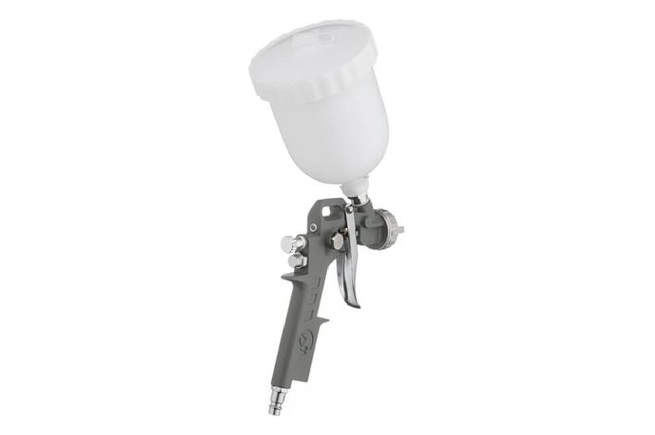 Краскопульт пневматический - хороший выбор для несложных покрасочных работ. Покрасочный пистолет сконструирован по технологии НР (High Pressure), что подразумевает, использование высокого давления с относительно низким расходом воздуха. Так, при рабочем давлении до 5 атм на входе и диаметре форсунки 1,5 мм, его расход воздуха колеблется между 130 и 190 л/мин. Он отлично справится с бытовыми покрасочными задачами и может применяться с большинством видов ЛКМ. Несложная конструкция обуславливает простоту и эффективность в эксплуатации. Емкость пластикового бачка с верхним расположением составляет 600 мл. Факел распыления может быть плоским или овальным. Рабочее давление: до 5 атм; Расход воздуха: 130-190 л/мин; Диаметр форсунки: 1.5 мм; Диаметр шланга: 6-8 мм; Объем бачка: 600 мл; Расположение бачка: верхнее; Материал бачка: пластик