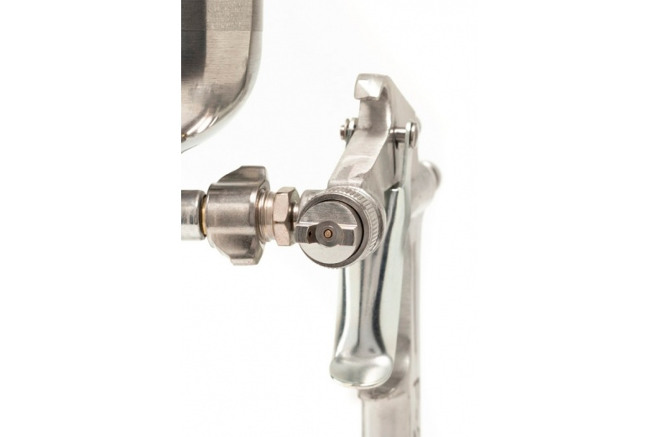 Пневмопистолет с регулируемым бачком. Применяется для нанесения лакокрасочных материалов, (таких как лак, олифа, краска, грунтовка, глянец, глазурь, эмаль) и клея на поверхности из пластика, металла, дерева, керамики. Используется в строительстве, мебельной промышленности, автомобильном сервисе и т. д.