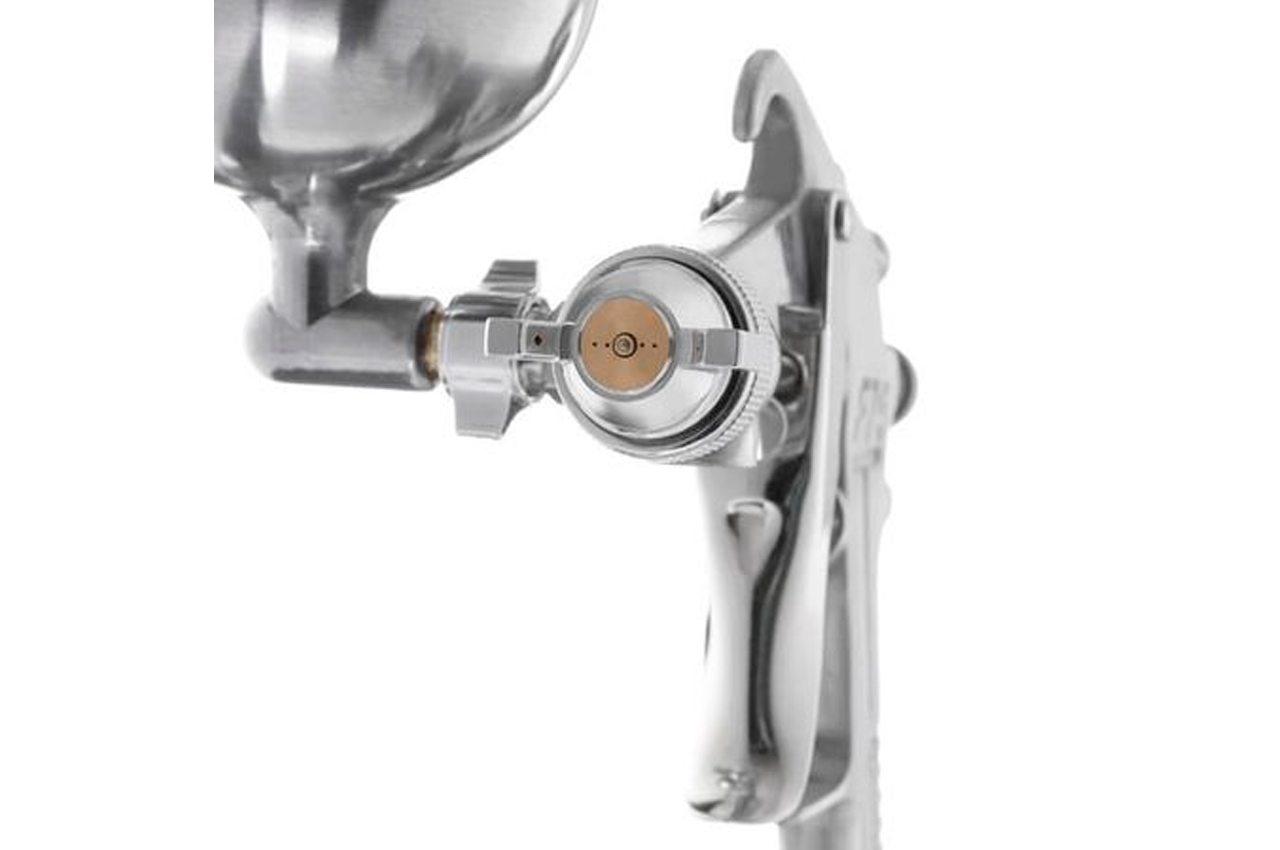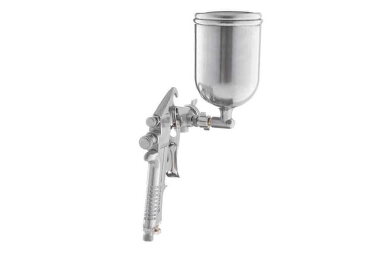 Покрасочный пистолет сконструирован по технологии НР (High Pressure), что подразумевает, использование высокого давления с относительно низким расходом воздуха. Так, при рабочем давлении до 5 атм и диаметре форсунки 1,5 мм, его расход воздуха колеблется в пределах 130-190 л/мин. Он может применяться с большинством видов ЛКМ. Несложная конструкция обуславливает простоту и эффективность в эксплуатации. Емкость металлического бачка с верхним расположением и возможностью регулировки его угла наклона на 360° составляет 400 мл. Факел распыления может быть плоским или овальным. Рабочее давление: до 5 атм; Расход воздуха: 130-190 л/мин; Диаметр форсунки: 1.5 мм; Диаметр шланга: 6-8 мм; Объем бачка: 400 мл; Расположение бачка: верхнее; Материал бачка: металл