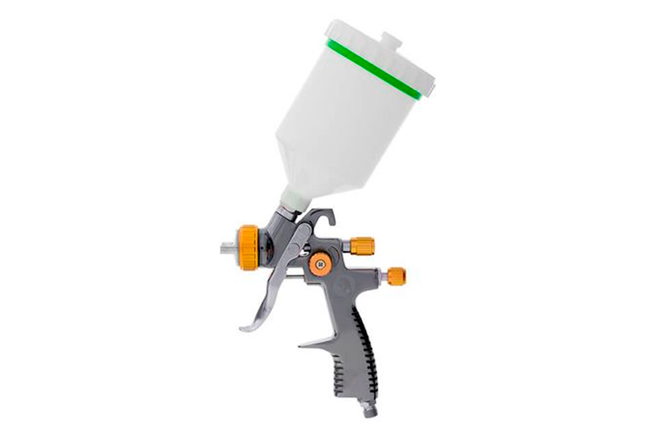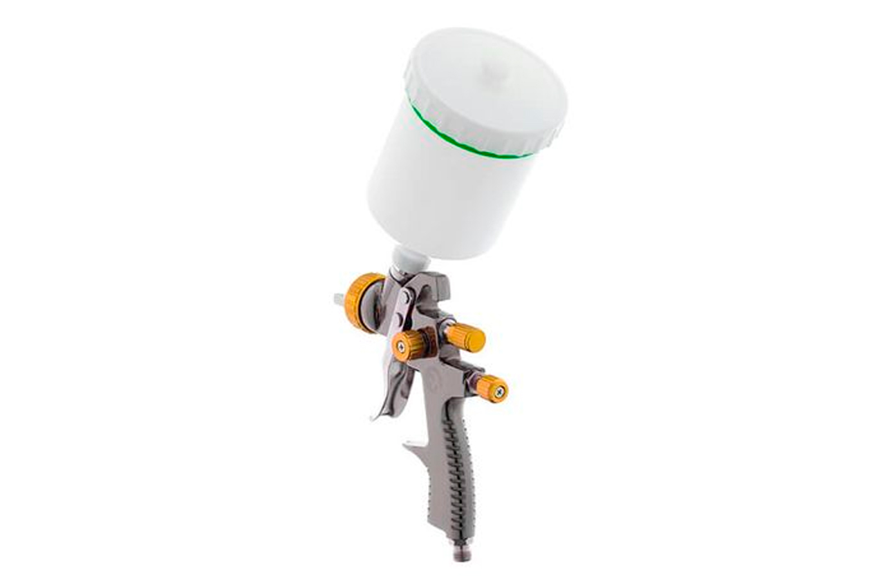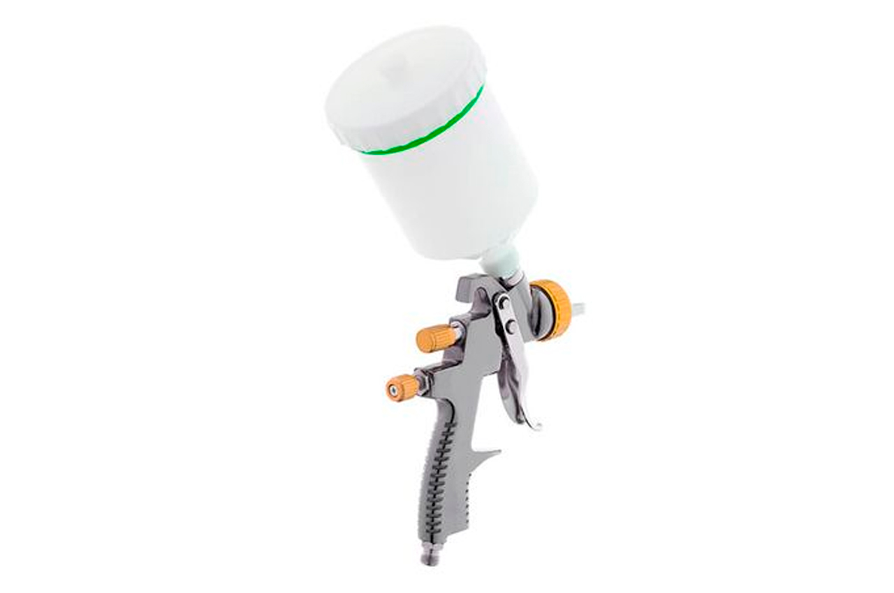 Краскораспылитель пневматический РТ-0136 - профессиональный инструмент, который чаще всего используется в автомастерских для покраски машин, в строительно-отделочных работах или в мебельной промышленности. Эта модель характеризуется высокой скоростью и эффективностью нанесения ЛКМ на целевую поверхность с эффективностью достигающей 92%. Комплектация: щетка для чистки, фильтр в бачок, 2 ключа; Рабочее давление: до 1,5 атм; Расход воздуха: 170-200 л/мин; Диаметр форсунки: 1.8 мм; Объем бачка: 600 мл; Расположение бачка: верхнее; Материал бачка: пластик; Диаметр шланга: 6-8 мм