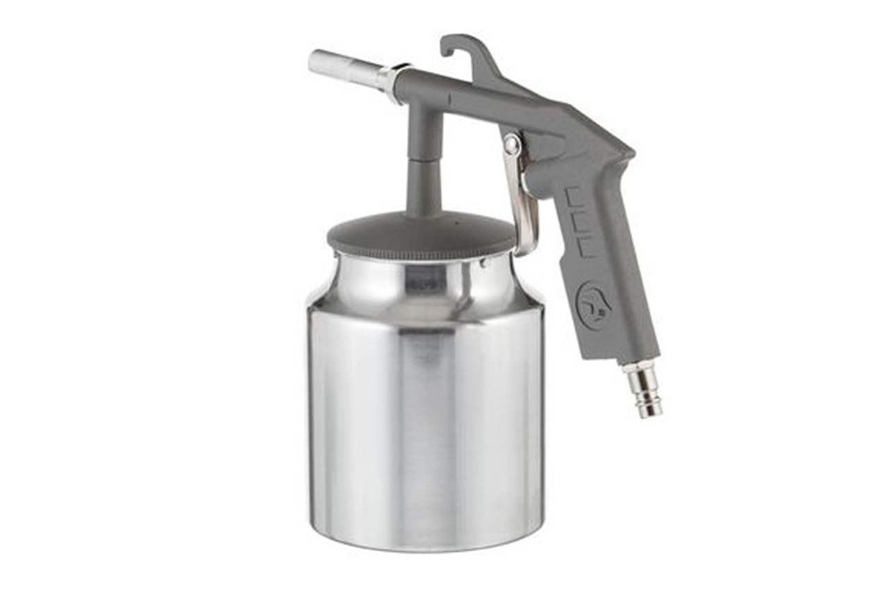 Пневмопистолет пескоструйный с нижним баком используется для выполнения работ по очистке поверхностей от грязи, краски, стойких загрязнений. Для работы применяется промытый кварцевый песок или специальная абразивная смесь. Объем металлического бака - 1 л. Рабочее давление - 8 атм. Расход воздуха: 400 л/мин; Диаметр форсунки: 6 мм; Диаметр шланга: 10 мм; Объем бачка: 1000 мл; Материал бачка: металл; Тип подачи: гравитационный; Резьба внутренняя: 1/4"; Рабочее давление: до 8 атм