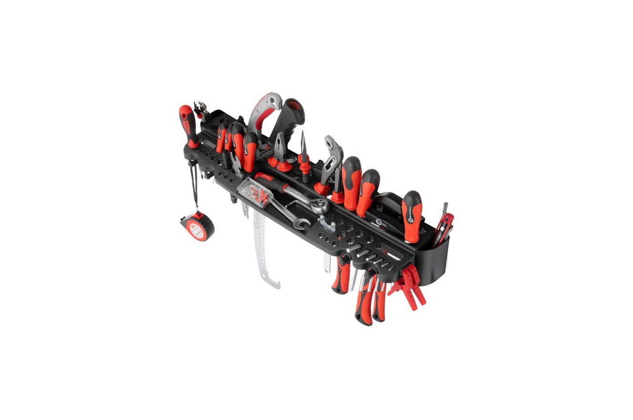 Полка с отверстиями под инструмент позволит удобно разместить ваш ручной инструмент в удобном месте. Отвертки, плоскогубцы, молотки - все будет расположено в одном месте для удобства пользования. Имеется 5 отверстий для крепления полки к стене/стелажу. Габаритные размеры: 610x160x45 мм