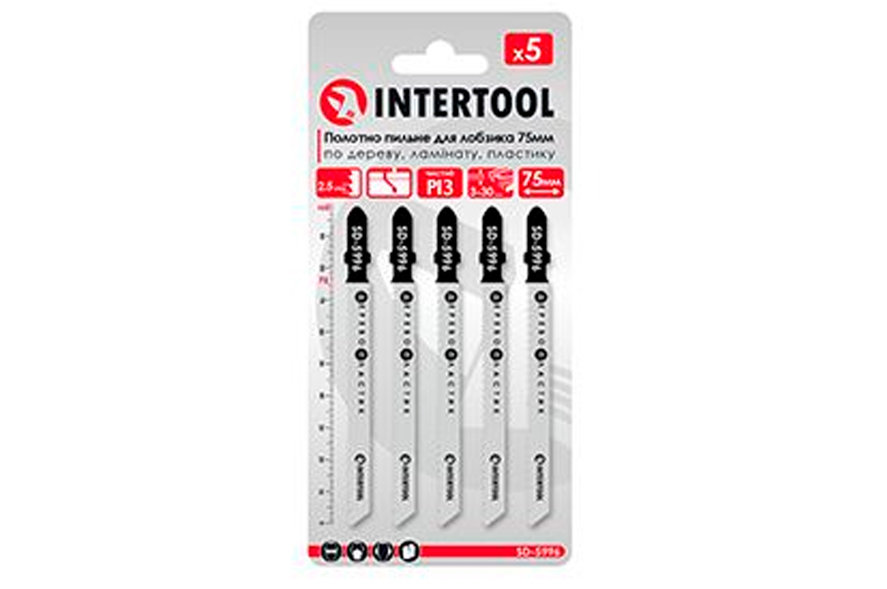 Полотно пильное для лобзика Intertool - 75 х 2,5 мм дерево-пластик (5 шт.) SD-5996
