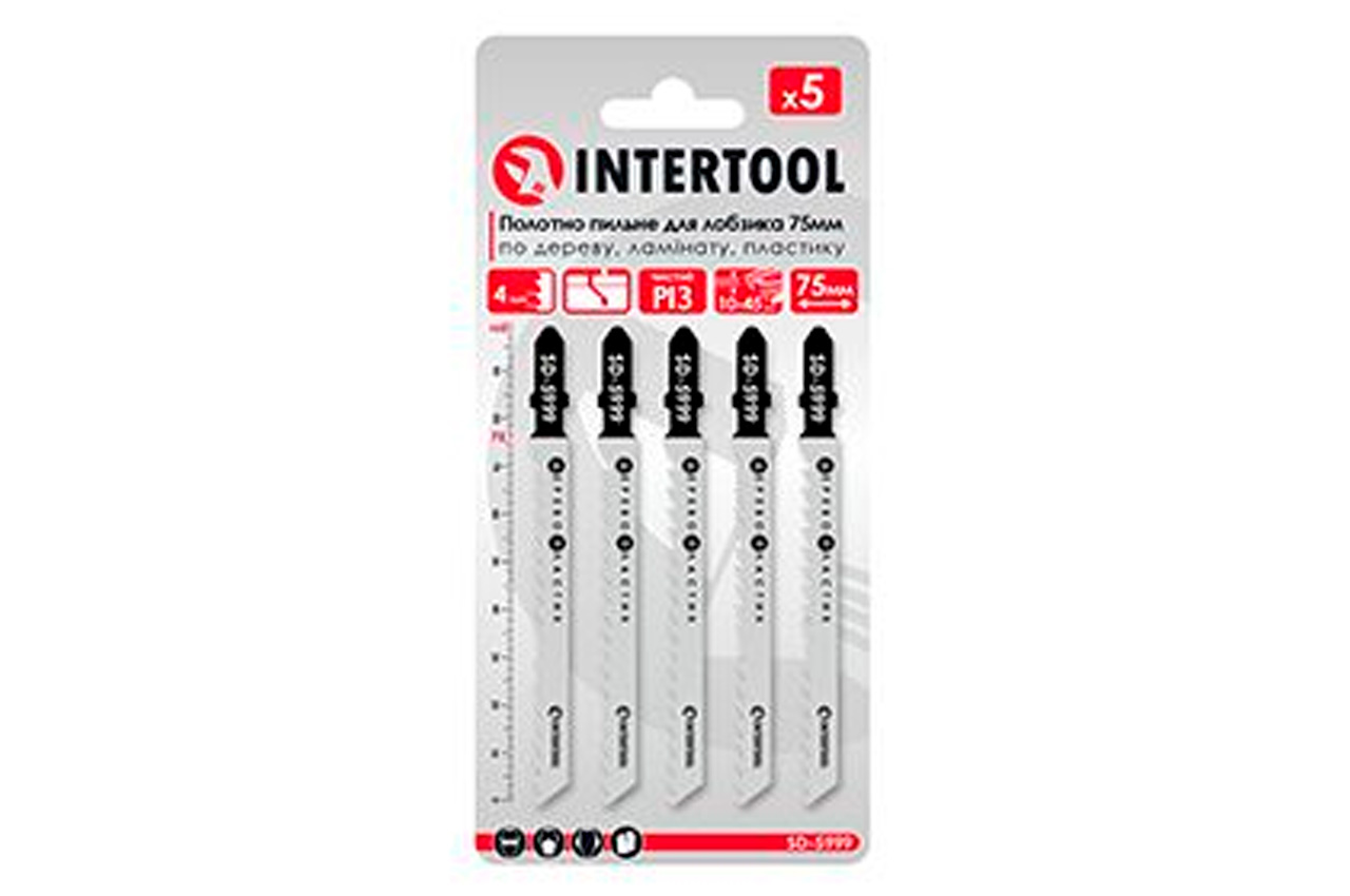 Полотно пильное для лобзика Intertool - 75 х 4 мм дерево-пластик (5 шт.) SD-5999