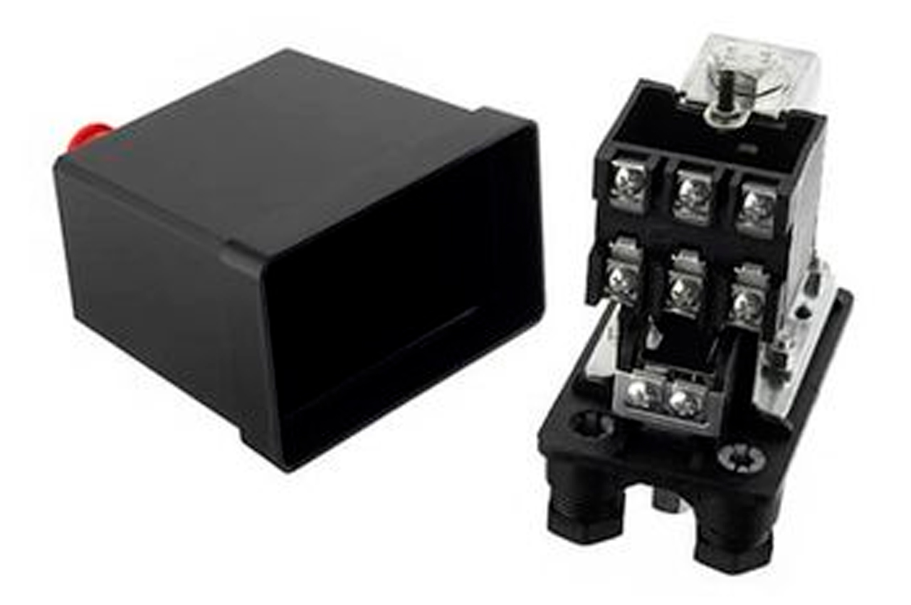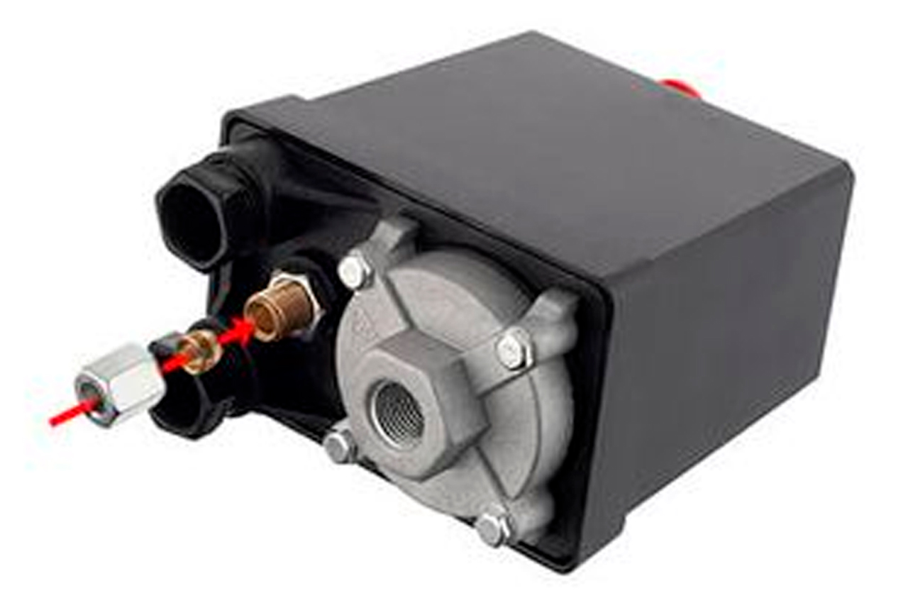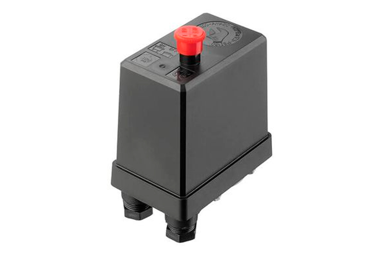 Прессостат или реле давления (блок управления) предназначен для контроля давления в ресивере компрессора по заданным параметрам в полностью автоматическом режиме. Используется для трехфазных поршневых воздушных компрессоров с напряжением 380В и максимальной мощностью до 3 кВт. Блок автоматики позволяет осуществлять пуск и остановку компрессора по мере расхода воздуха потребителем. Корпус устройства выполнен из качественного пластика с надежной кнопкой, а мембранно-пружинный механизм обеспечивает стабильную и бесперебойную работу: замыкает и размыкает цепь питания электродвигателя в зависимости от рабочего давления. Устройство легко самостоятельно установить на редуктор компрессора и подключить к электродвигателю. Применяется в качестве замены вышедшего из строя существующего прессостата или для сборки нового компрессора.