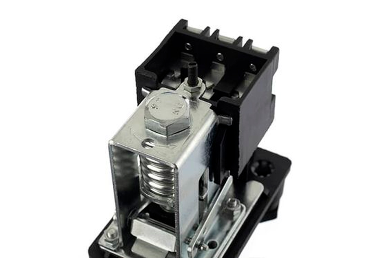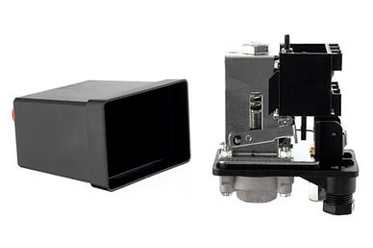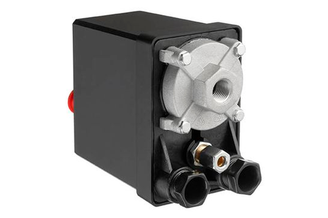 Прессостат или реле давления (блок управления) предназначен для контроля давления в ресивере компрессора по заданным параметрам в полностью автоматическом режиме. Используется для трехфазных поршневых воздушных компрессоров с напряжением 380В и максимальной мощностью до 3 кВт. Блок автоматики позволяет осуществлять пуск и остановку компрессора по мере расхода воздуха потребителем. Корпус устройства выполнен из качественного пластика с надежной кнопкой, а мембранно-пружинный механизм обеспечивает стабильную и бесперебойную работу: замыкает и размыкает цепь питания электродвигателя в зависимости от рабочего давления. Устройство легко самостоятельно установить на редуктор компрессора и подключить к электродвигателю. Применяется в качестве замены вышедшего из строя существующего прессостата или для сборки нового компрессора.