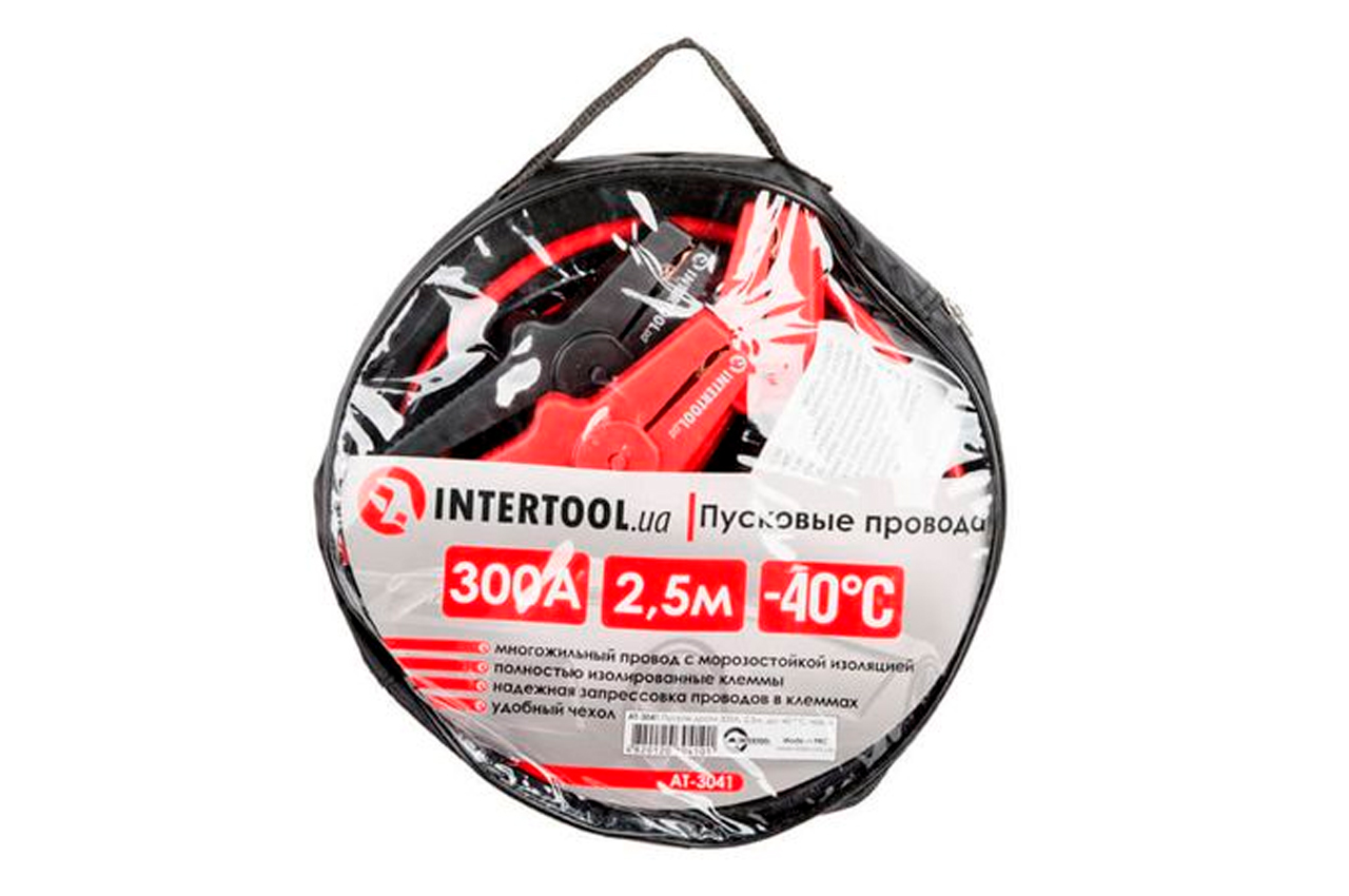 Провод для прикуривания автомобиля с техническими параметрами 300А и 2,5 метра предназначается для запуска двигателя авто с севшим аккумулятором. В комплектации идет два провода черного и красного цвета. Жилы кабеля изготовлены из меди, и покрыты силиконовой изоляцией. Длина проводов по 2,5 метра, а максимальная сила пускового тока, на который рассчитаны кабели, составляет 300 Ампер. Провода имеют быстросъемные зажимы типа «крокодил». Пусковые провода позволяют оперативно осуществить запуск двигателя автомобиля с севшим аккамулятором Максимальный ток: 300 А