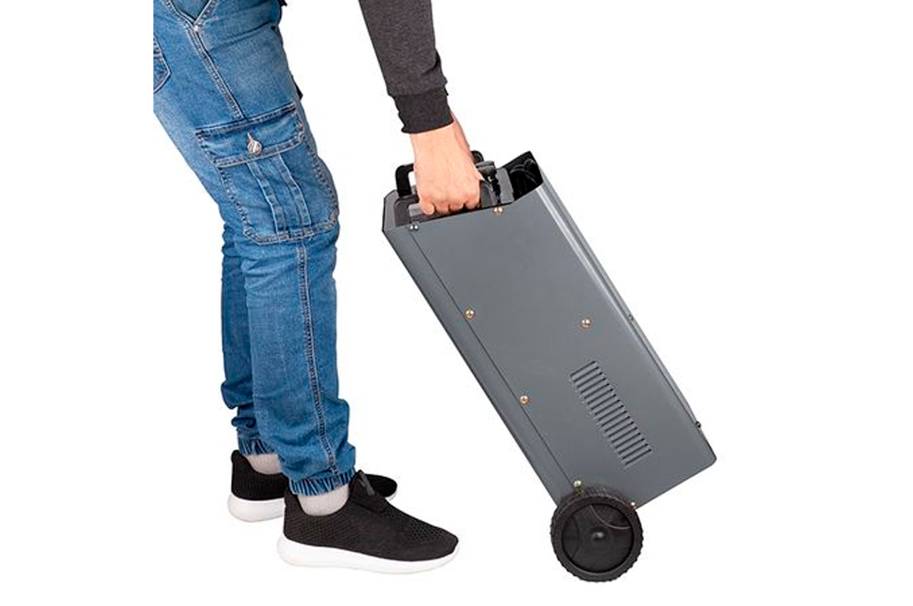 Пускозарядное устройство предназначено для зарядки аккумуляторных батарей с напряжением 12В или 24В и емкостью до 700Ач, а также для пуска двигателя транспортного средства совместно с аккумуляторной батареей 12В или 24В. Имеет металлический корпус и отличается высокой надежностью и качеством сборки всех узлов и ЭРЭ. Потребляемая мощность устройства составляет 1600Вт, напряжение питания 230В. Напряжение питания: 230 В; Выходное напряжение постоянного тока: 1224 В; Пусковой ток: 300 А; Емкость аккумулятора: 700 Ач