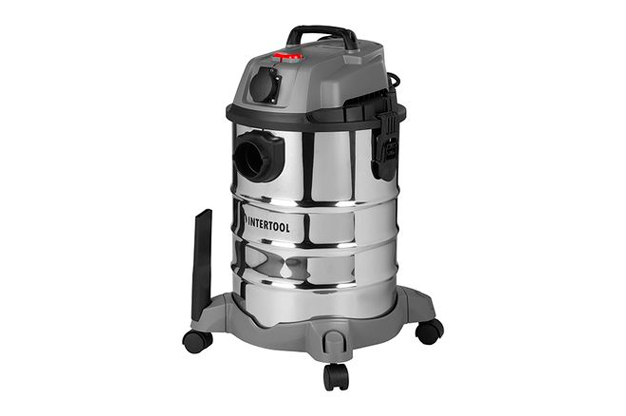 Промышленный пылесос INTERTOOL DT-1030 предназначен для уборки отходов, возникающих во время строительных работ. Данная модель разработана специально для больших помещений, однако ее эффективно можно применять и в домашних условиях, гостиницах, а также в промышленных целях. Подходит как для сухой, так и для влажной уборки. Для удобства совместной работы с электроинструментами на пылесосе предусмотрена розетка переменного тока 220 Вольт. Пылесос питается от стандартной бытовой розетки. Длина сетевого кабеля 5 метров, так что аппарат является весьма мобильным. Оснащен пылесос электродвигателем мощностью 1400 Ватт, поэтому своей производительностью может удивить даже самого требовательного покупателя. Корпус пылесоса выполнен из нержавеющей стали. Пылесос оснащен резервуаром для сбора мусора, объемом 30 литров. Мусоросборный шланг имеет длину 3 метра (включая длину телескопической трубки) и диаметр 35 мм.
