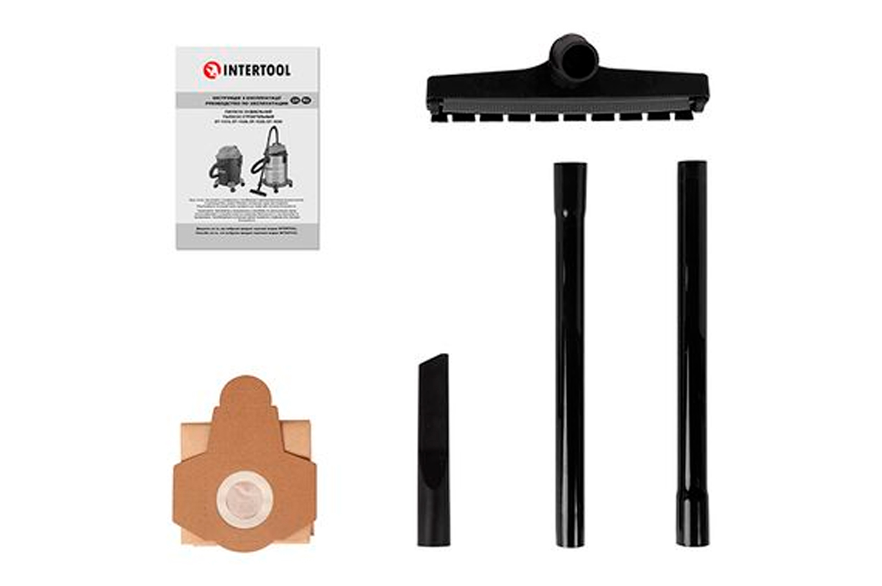 Назначение Иногда после проделанной работы остаётся не меньше грязи, чем удовольствия от результата. Именно для таких случаев создан строительный пылесос DT-1015 — компактный, удобный и надёжный помощник, с которым уборка становится проще. Он идеально подойдёт для небольших помещений, будь то гараж, мастерская или стройплощадка. Легко справляется с сухим и влажным мусором, а при необходимости — и с пролитой жидкостью. Надёжный выбор как для дома, так и для профессионального использования. Производительность Пылесос работает от обычной розетки и оснащён двигателем, мощностью 1000 Вт. Этого хватает, чтобы без труда справляться со строительным мусором, ведь рабочее разряжение составляет 17 кПа. Прочный, но лёгкий пластиковый корпус делает его удобным в переноске и использовании. Объёма бака на 15 литров достаточно, чтобы не отвлекаться на постоянную очистку. Благодаря функции выдува, пылесос поможет быстро очистить рабочие поверхности, продуть инструмент или вымести мусор из труднодоступных углов. Удобство и мобильность Пылесос легко перемещается благодаря прочным колесам, установленным на широкой устойчивой платформе. Колеса вращаются на 360°, что позволяет разворачивать пылесос прямо на месте — без рывков, наклонов и риска опрокидывания. Это особенно удобно в стеснённых пространствах или при частом перемещении между зонами уборки. Для ещё большей свободы во время работы пылесос оснащён сетевым шнуром длиной 4 метра и шлангом 1,5 метра. Такой запас длины позволяет свободно передвигаться, не используя постоянно удлинитель или не меняя розетки.
